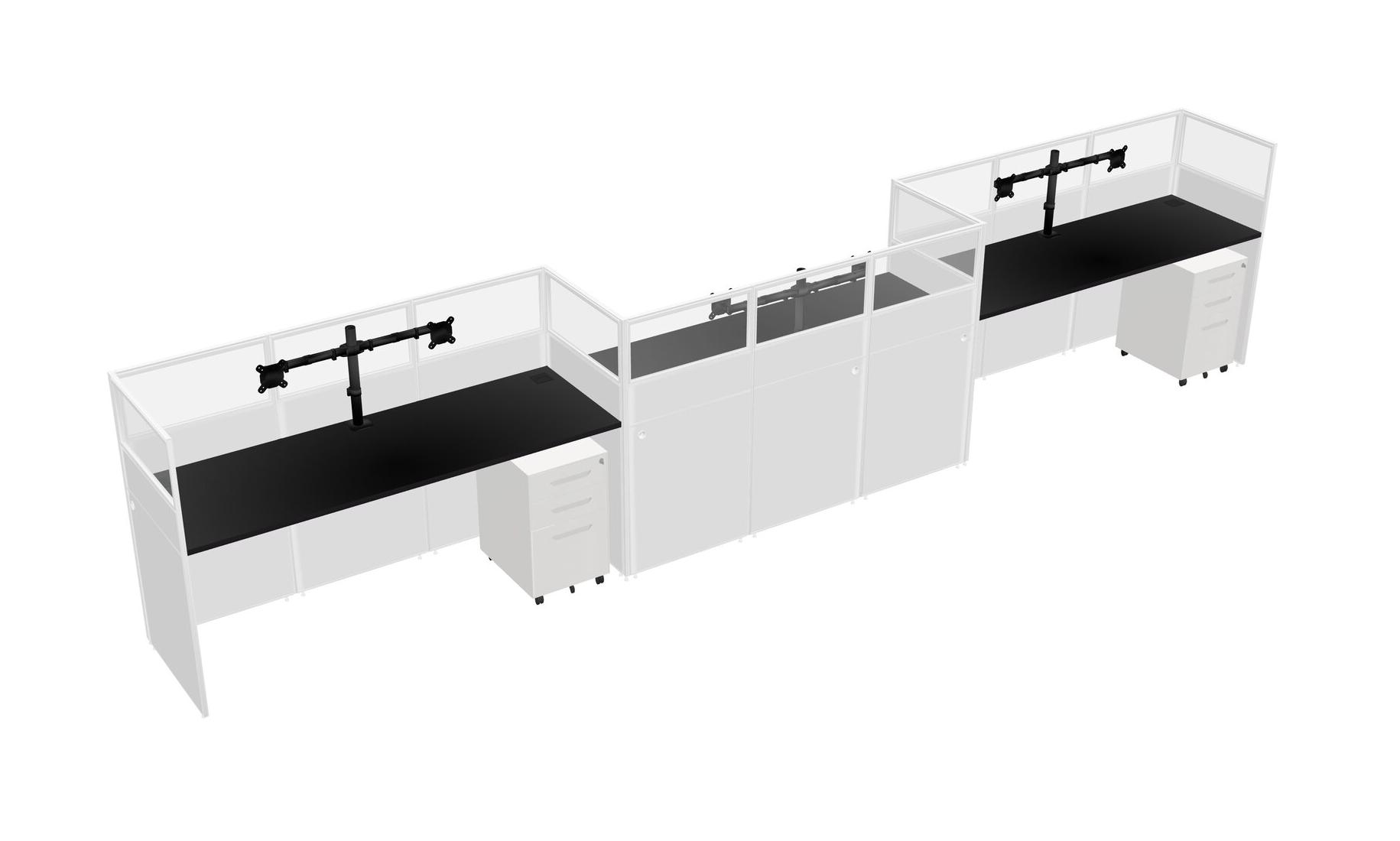 Black Rectangular Cubicle Workstations For 3 - Zigzag Formation + White Metal Mobile Drawers