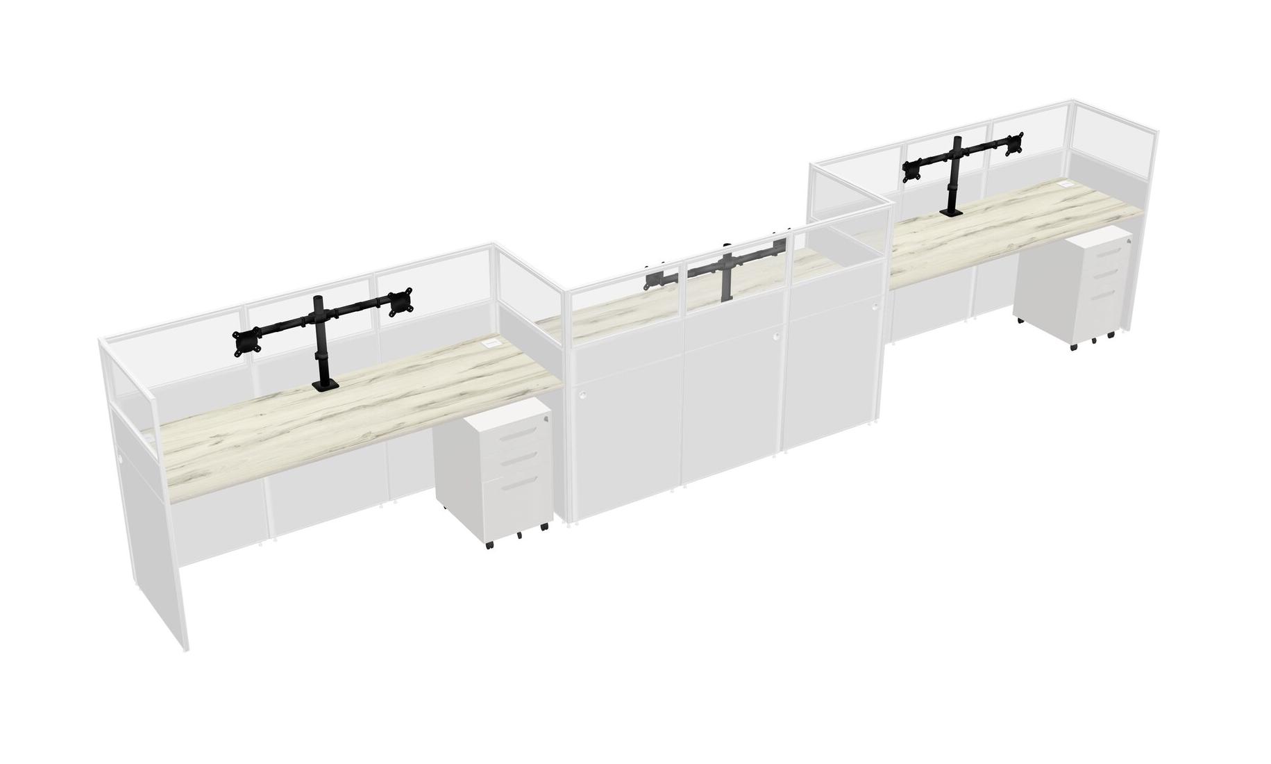 Heinne Holz Rectangular Cubicle Workstations For 3 - Zigzag Formation + White Metal Mobile Drawers