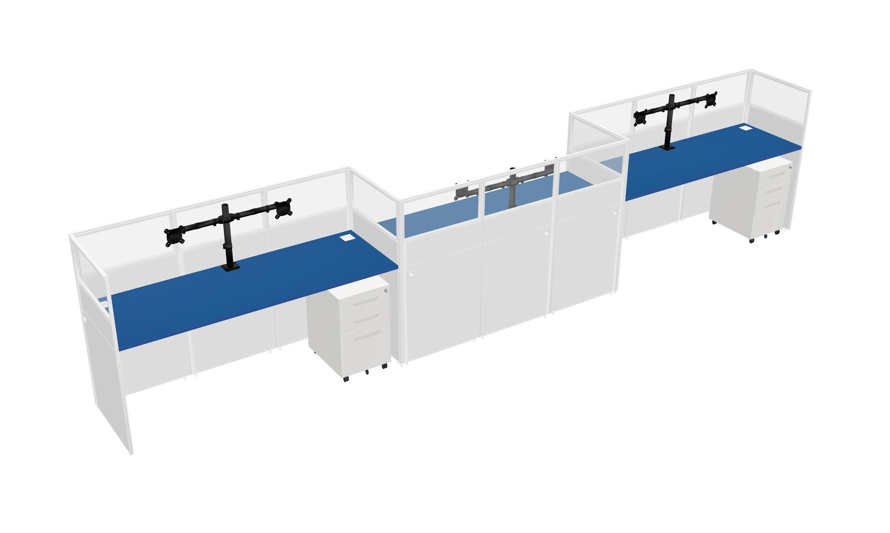 Prism Blue Rectangular Cubicle Workstations For 3 - Zigzag Formation + White Metal Mobile Drawers