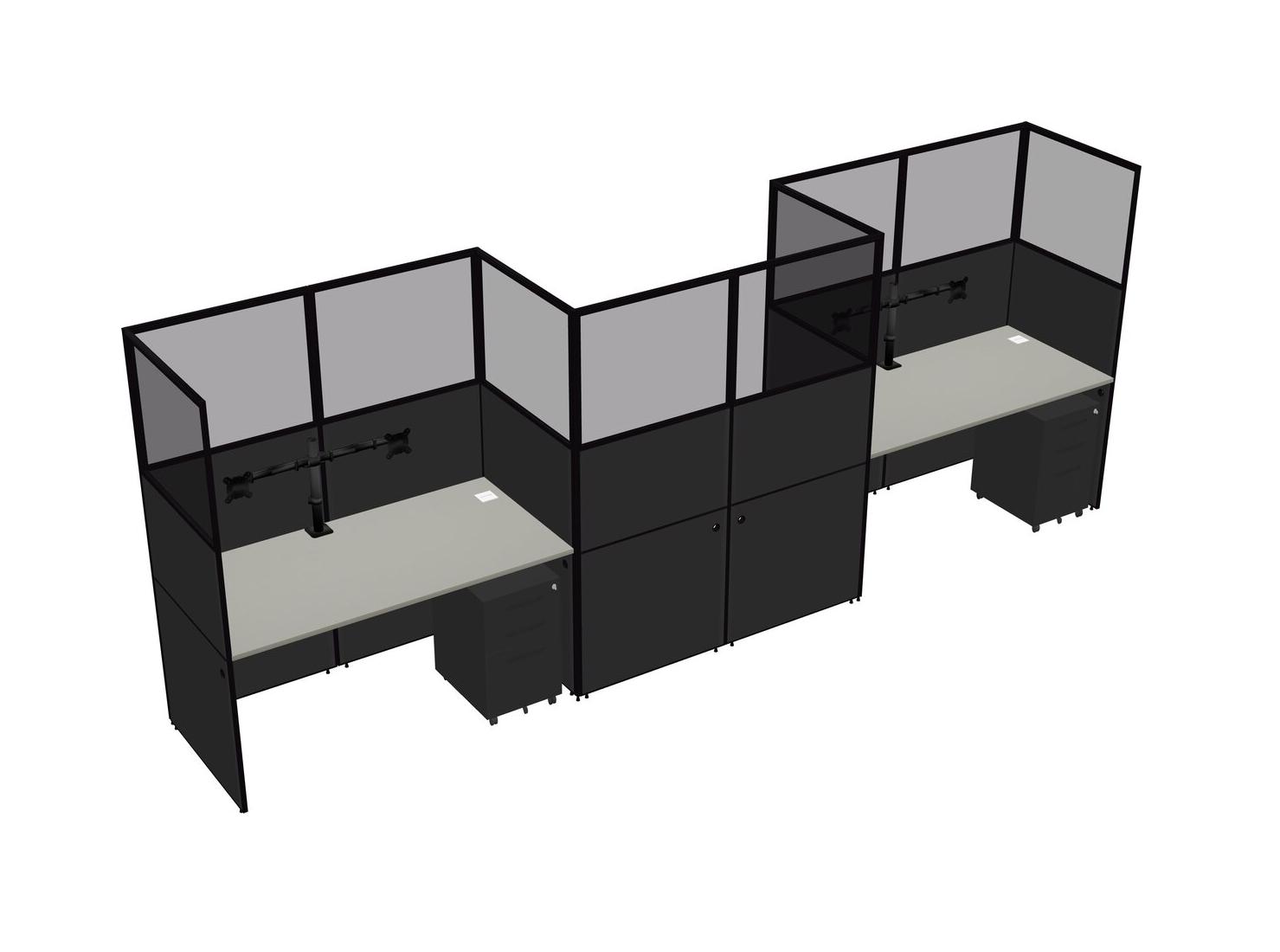 Grey Shadows Rectangular Cubicle Workstations For 3 - Zigzag Formation + Black Metal Mobile Drawers