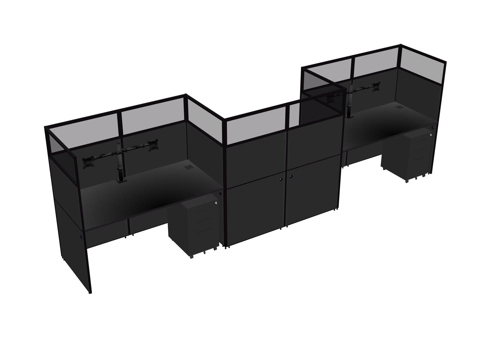 Black Rectangular Cubicle Workstations For 3 - Zigzag Formation + Black Metal Mobile Drawers