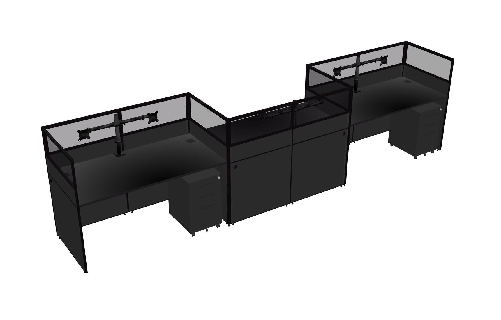 Black Rectangular Cubicle Workstations For 3 - Zigzag Formation + Black Metal Mobile Drawers