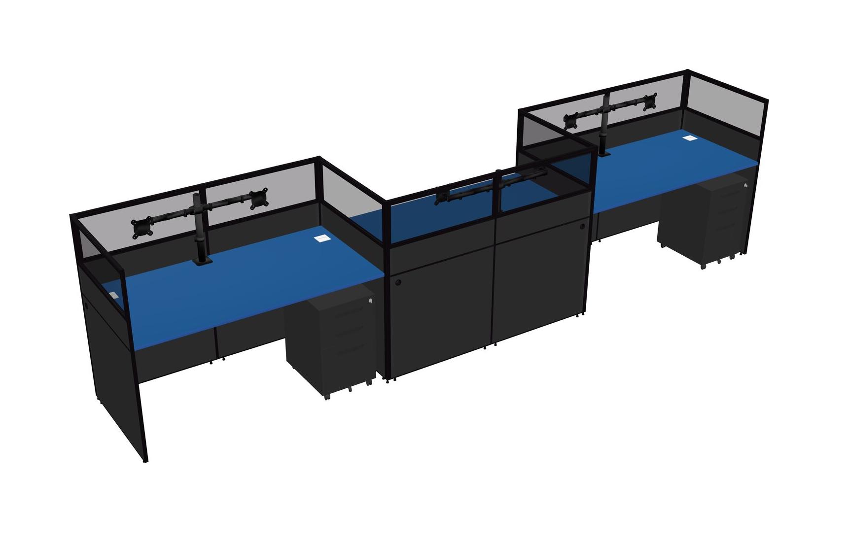 Prism Blue Rectangular Cubicle Workstations For 3 - Zigzag Formation + Black Metal Mobile Drawers