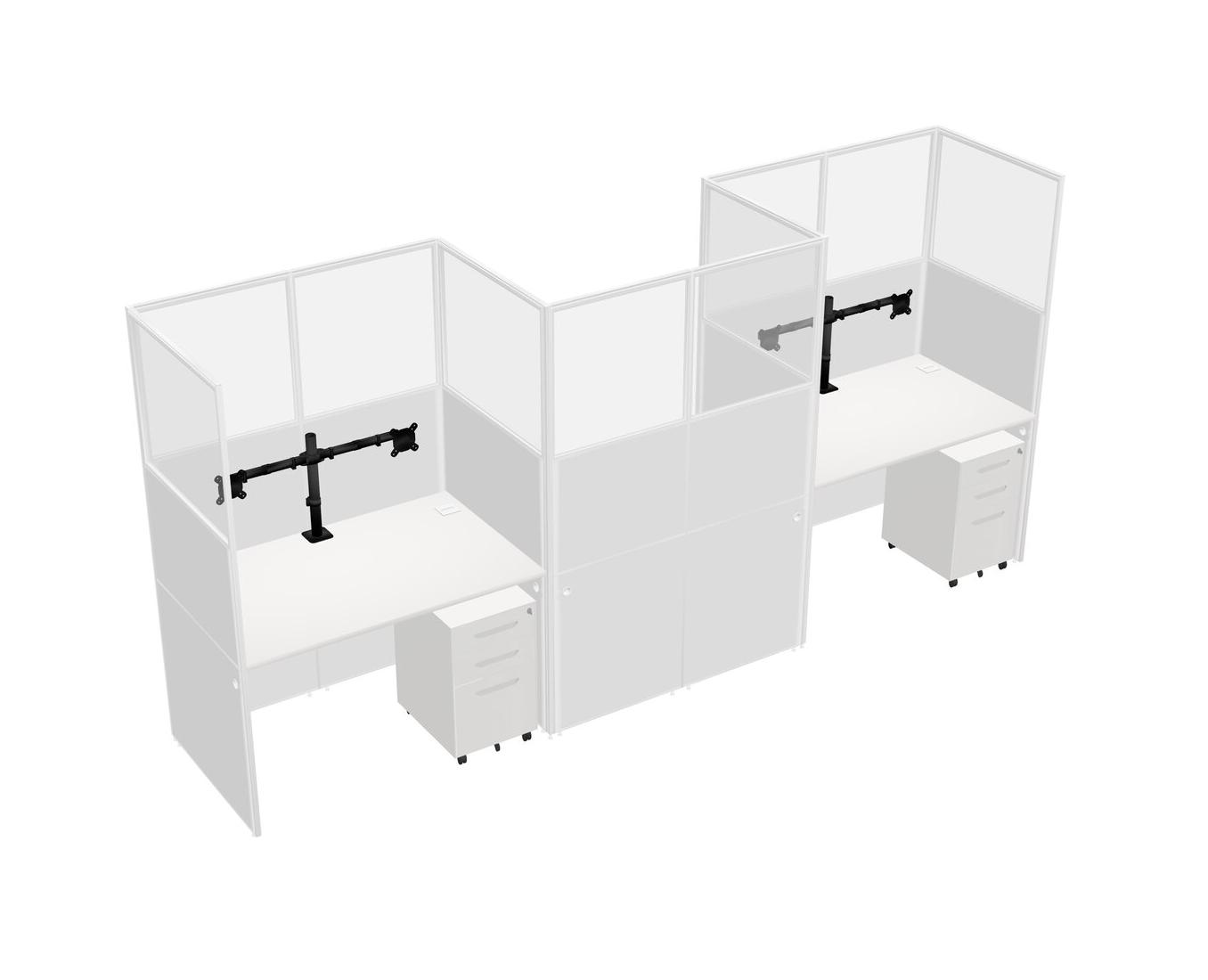 White Rectangular Cubicle Workstations For 3 - Zigzag Formation + White Metal Mobile Drawers