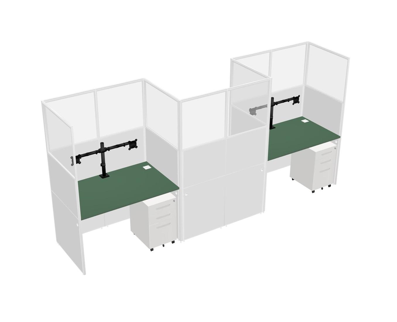 Green Rectangular Cubicle Workstations For 3 - Zigzag Formation + White Metal Mobile Drawers