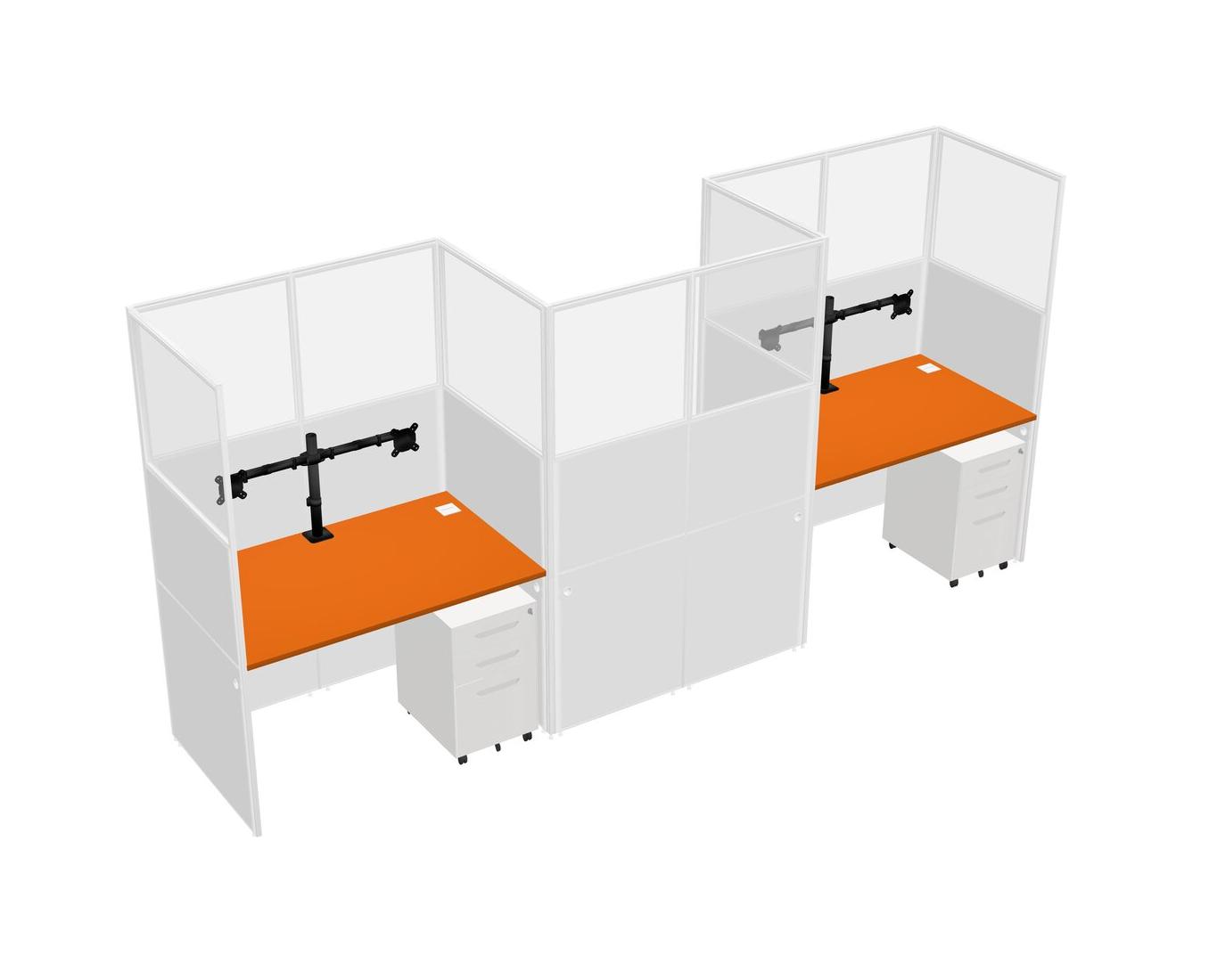 Orange Rectangular Cubicle Workstations For 3 - Zigzag Formation + White Metal Mobile Drawers