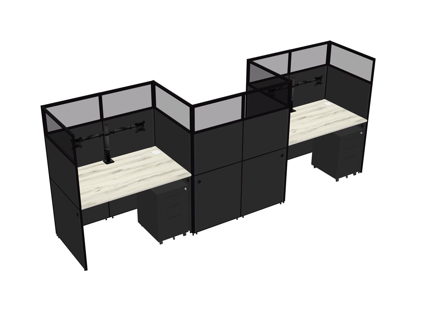 Heinne Holz Rectangular Cubicle Workstations For 3 - Zigzag Formation + Black Metal Mobile Drawers