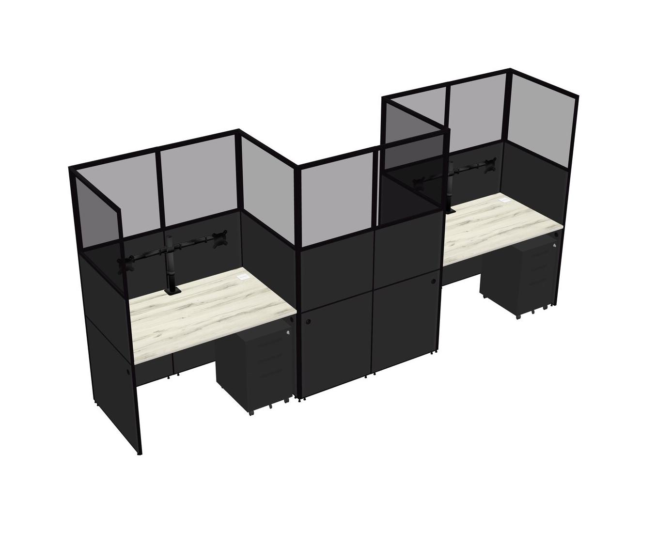 Heinne Holz Rectangular Cubicle Workstations For 3 - Zigzag Formation + Black Metal Mobile Drawers