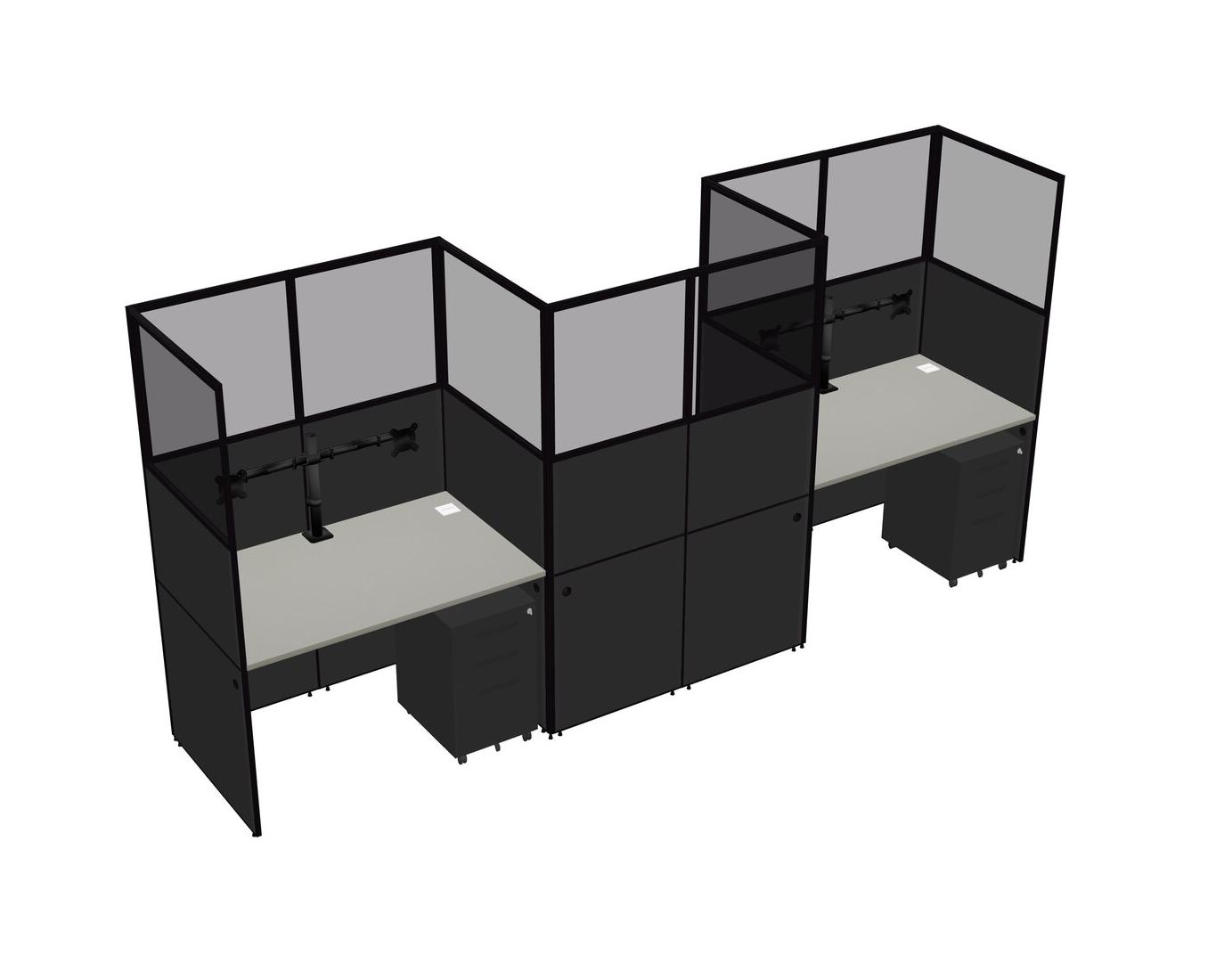 Grey Shadows Rectangular Cubicle Workstations For 3 - Zigzag Formation + Black Metal Mobile Drawers