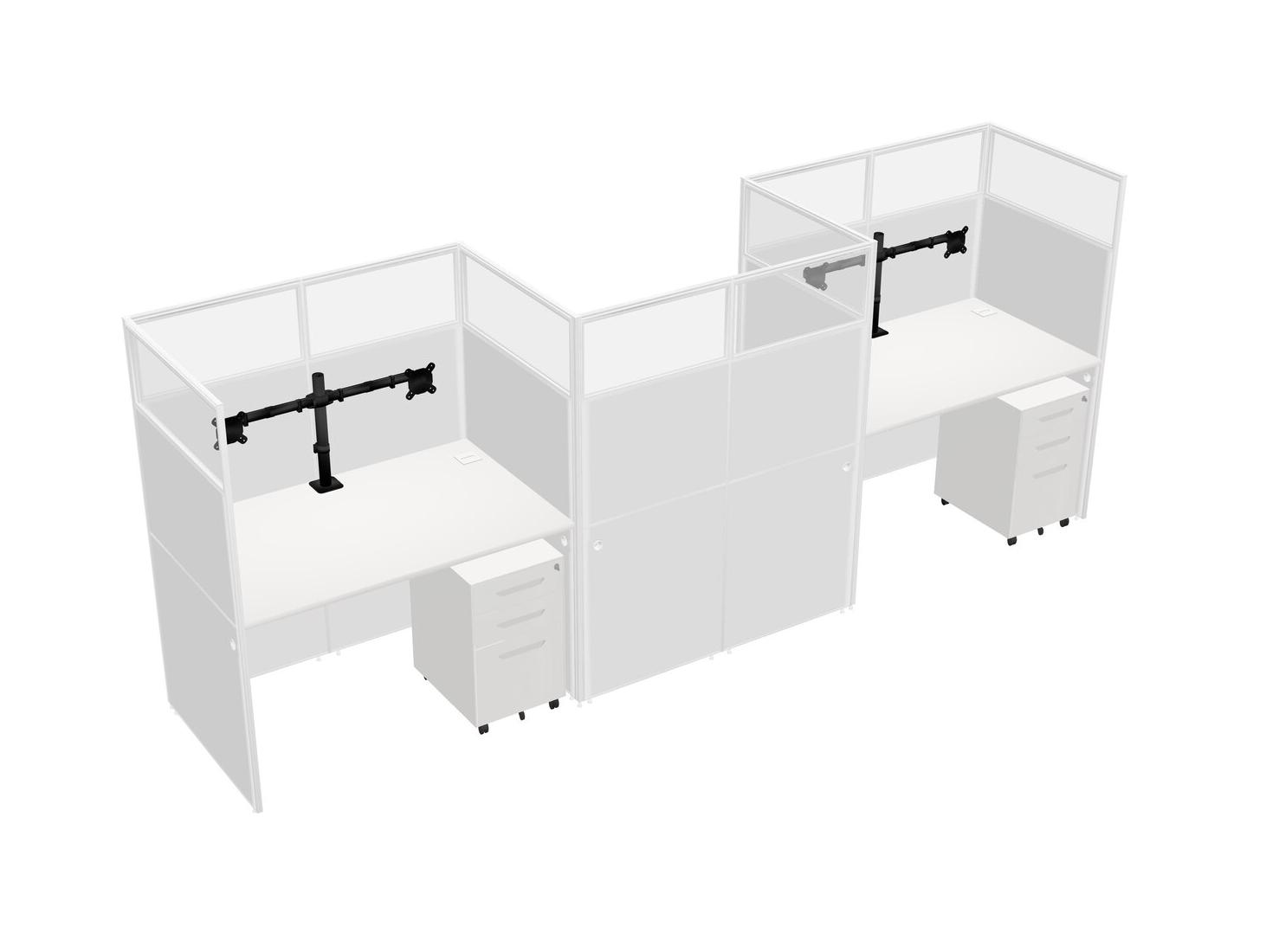 White Rectangular Cubicle Workstations For 3 - Zigzag Formation + White Metal Mobile Drawers