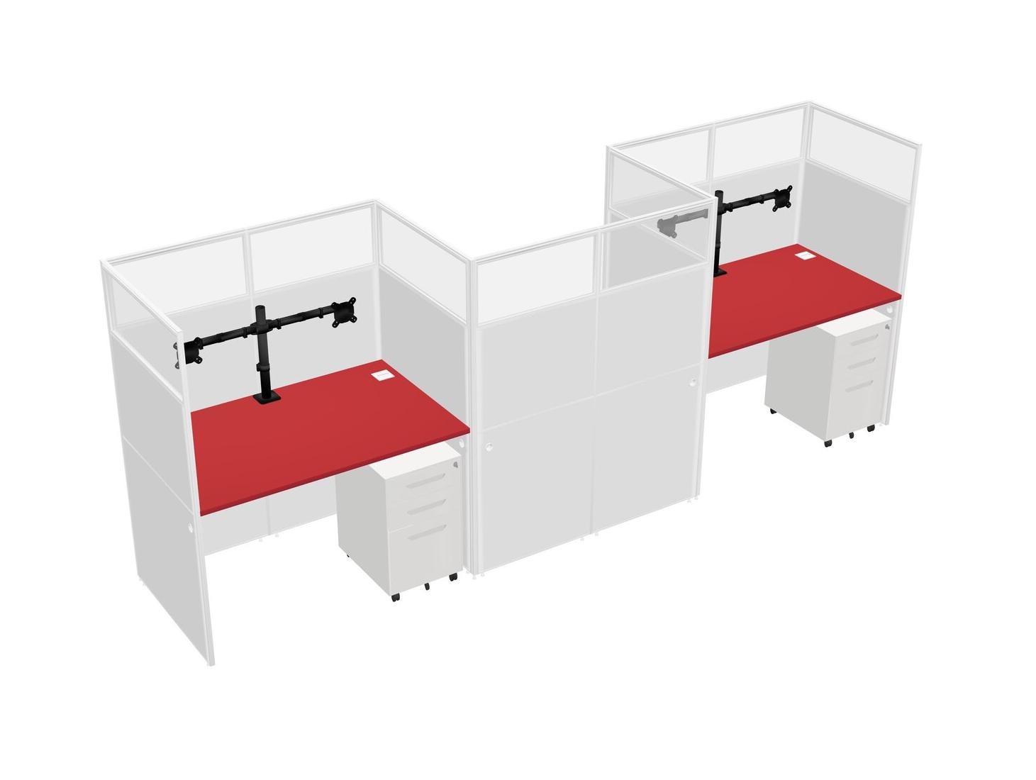 Prism Red Rectangular Cubicle Workstations For 3 - Zigzag Formation + White Metal Mobile Drawers
