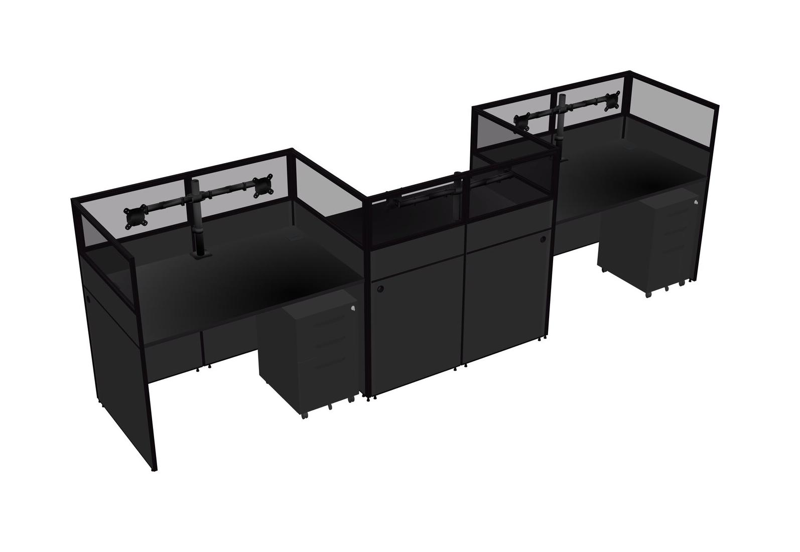 Black Rectangular Cubicle Workstations For 3 - Zigzag Formation + Black Metal Mobile Drawers