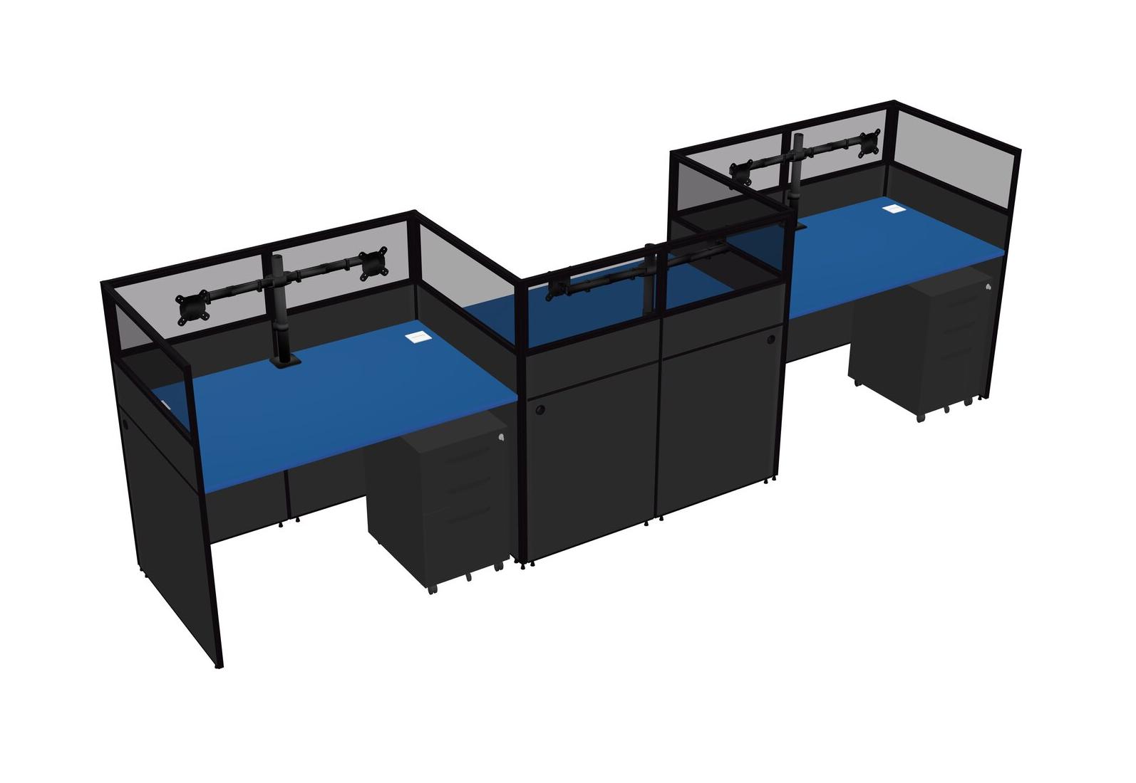Prism Blue Rectangular Cubicle Workstations For 3 - Zigzag Formation + Black Metal Mobile Drawers