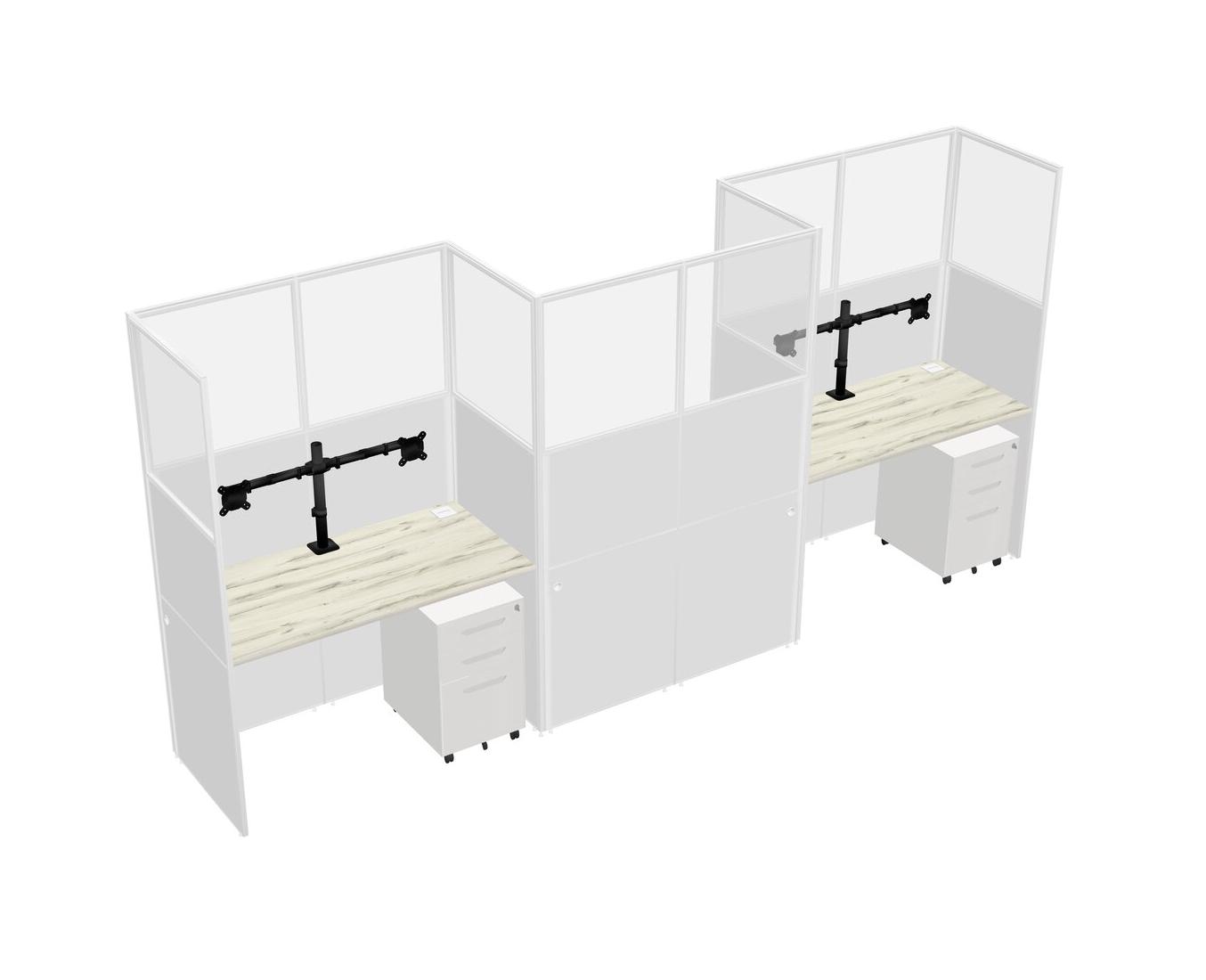 Heinne Holz Rectangular Cubicle Workstations For 3 - Zigzag Formation + White Metal Mobile Drawers