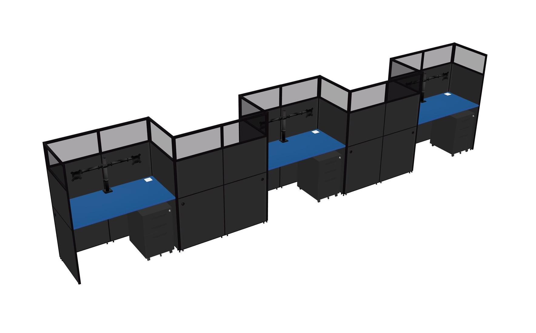 Prism Blue Rectangular Cubicle Workstations For 5 - Zigzag Formation + Black Metal Mobile Drawers