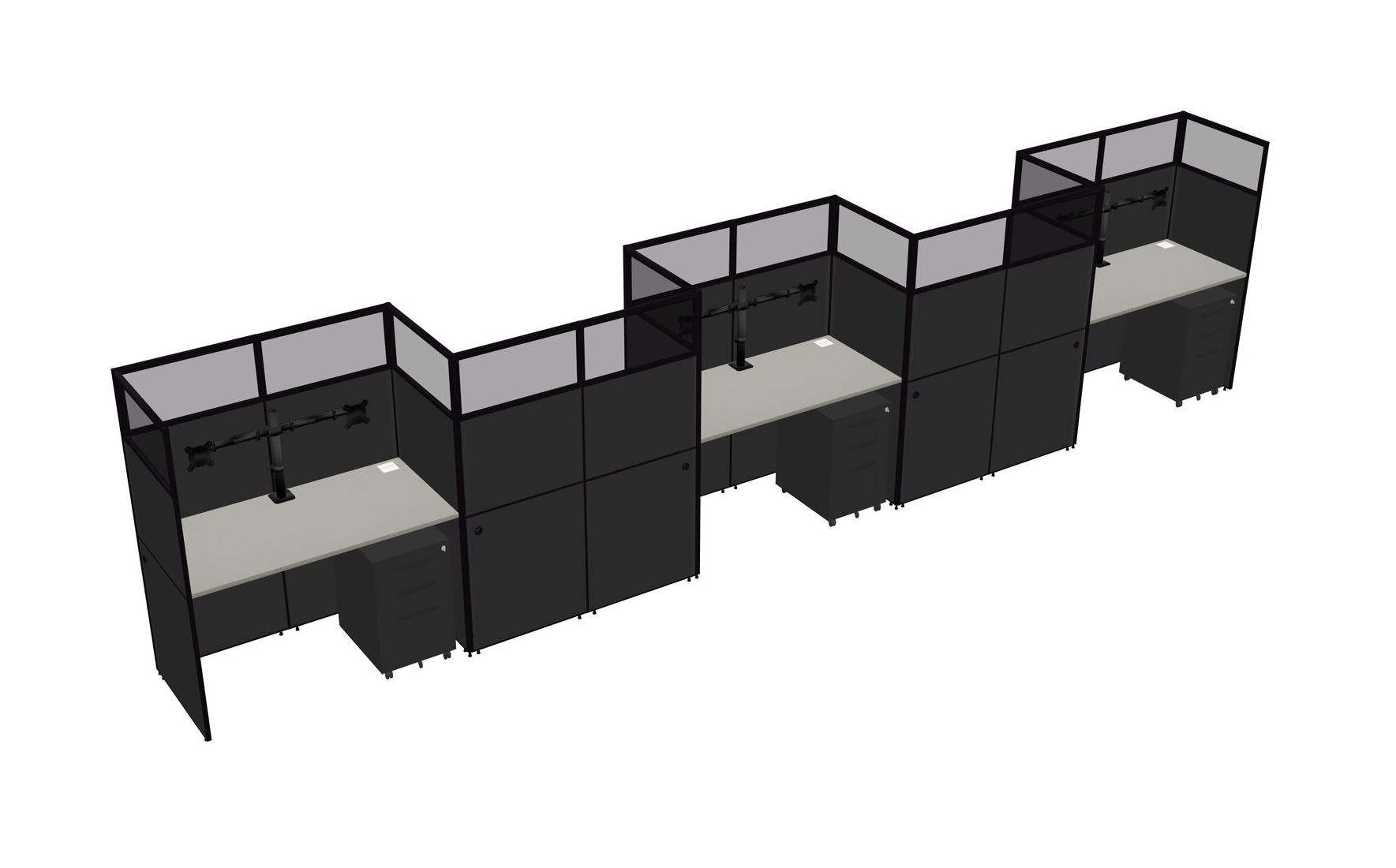 Grey Shadows Rectangular Cubicle Workstations For 5 - Zigzag Formation + Black Metal Mobile Drawers