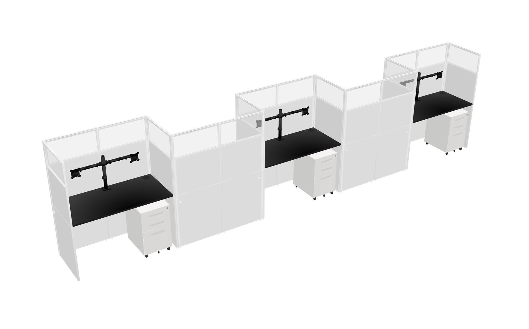 Black Rectangular Cubicle Workstations For 5 - Zigzag Formation + White Metal Mobile Drawers