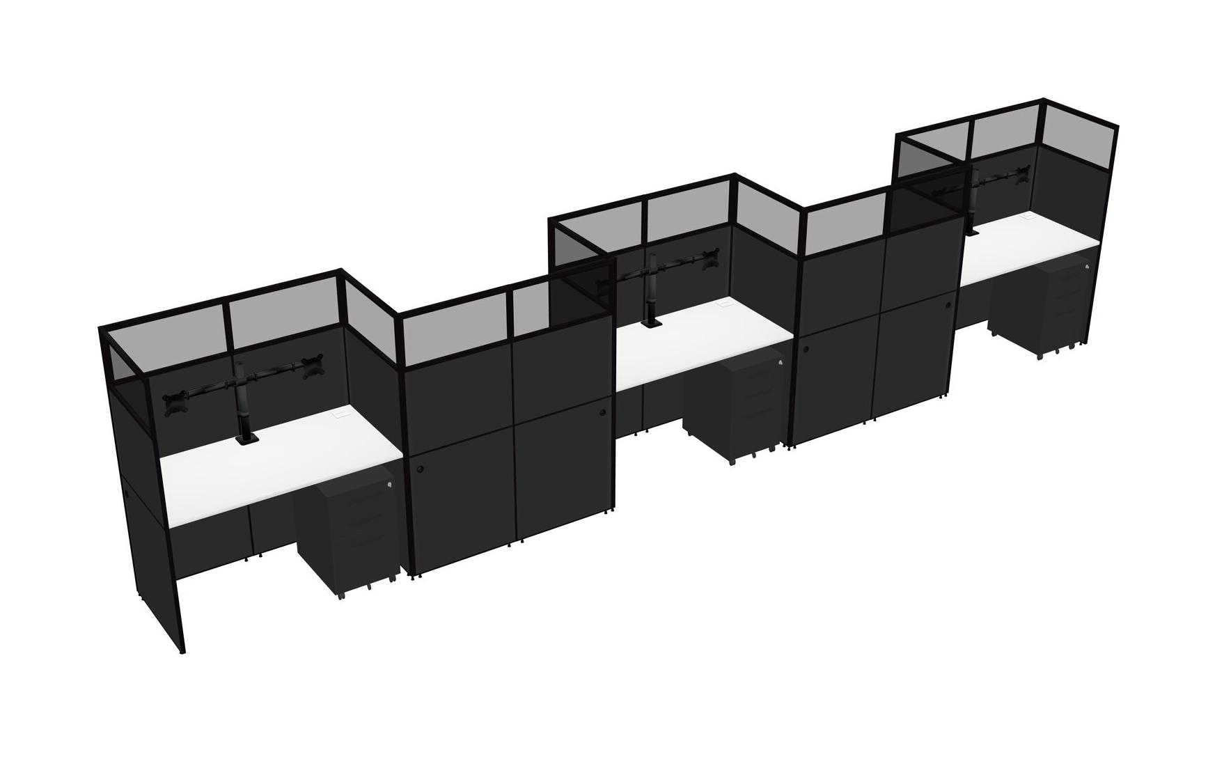 White Rectangular Cubicle Workstations For 5 - Zigzag Formation + Black Metal Mobile Drawers
