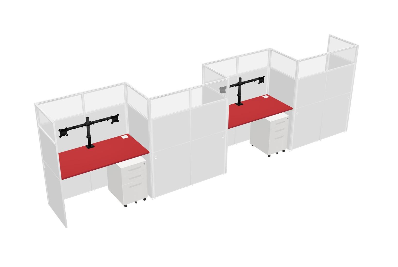 Prism Red Rectangular Cubicle Workstations For 4 - Zigzag Formation + White Metal Mobile Drawers