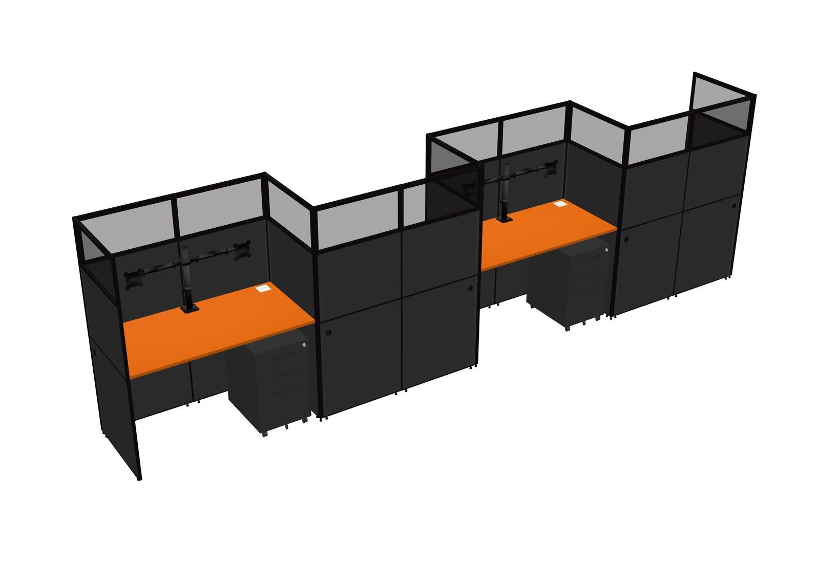 Orange Rectangular Cubicle Workstations For 4 - Zigzag Formation + Black Metal Mobile Drawers