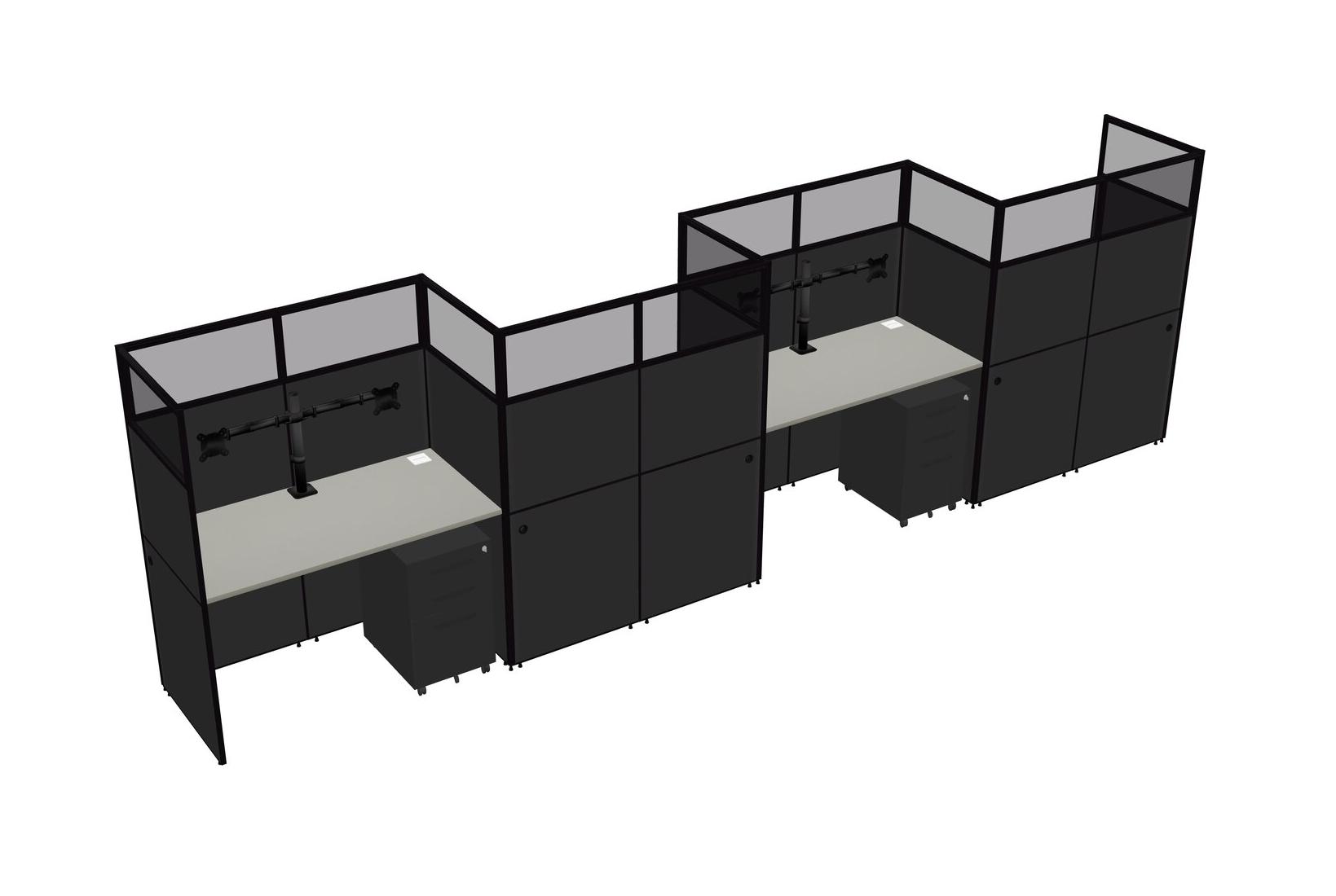 Grey Shadows Rectangular Cubicle Workstations For 4 - Zigzag Formation + Black Metal Mobile Drawers