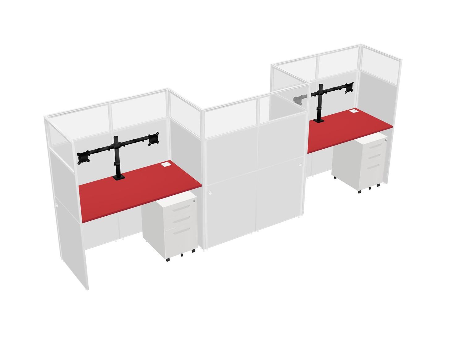 Prism Red Rectangular Cubicle Workstations For 3 - Zigzag Formation + White Metal Mobile Drawers