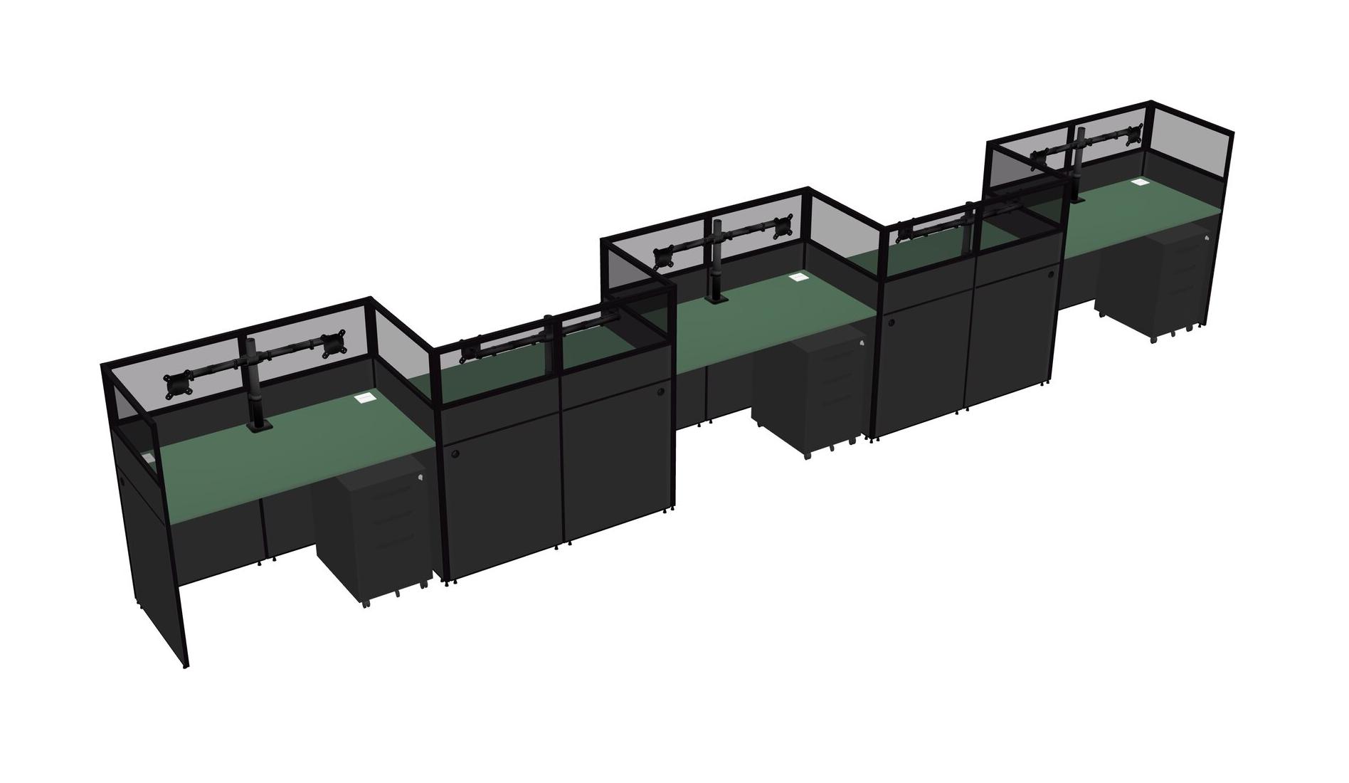 Green Rectangular Cubicle Workstations For 5 - Zigzag Formation + Black Metal Mobile Drawers