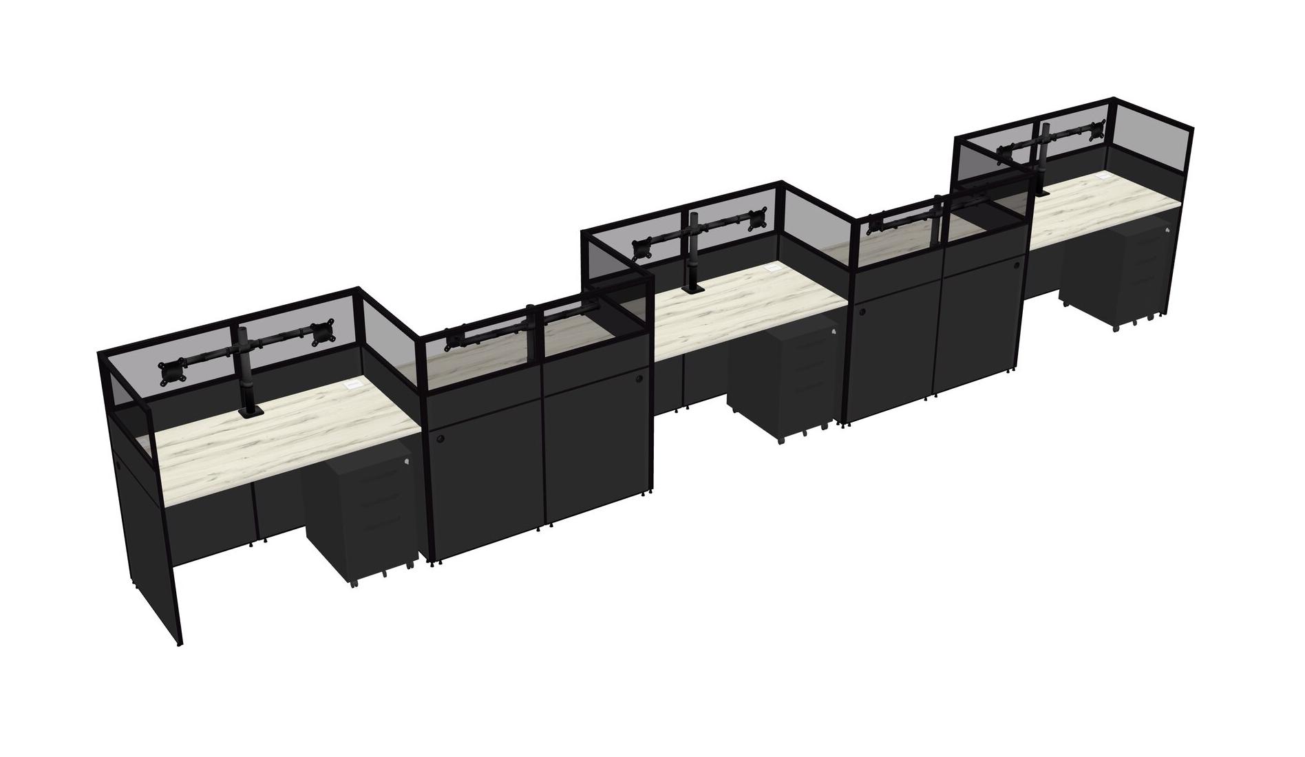 Heinne Holz Rectangular Cubicle Workstations For 5 - Zigzag Formation + Black Metal Mobile Drawers