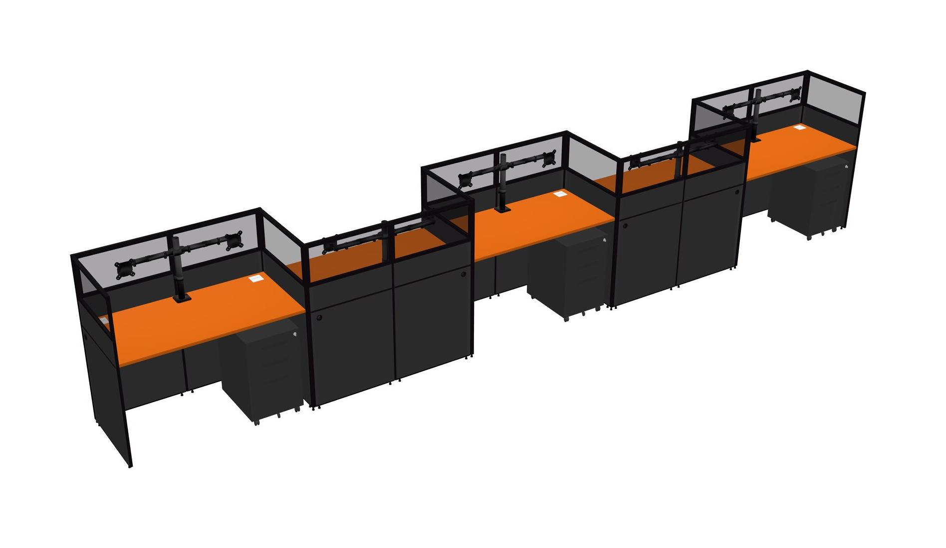 Orange Rectangular Cubicle Workstations For 5 - Zigzag Formation + Black Metal Mobile Drawers