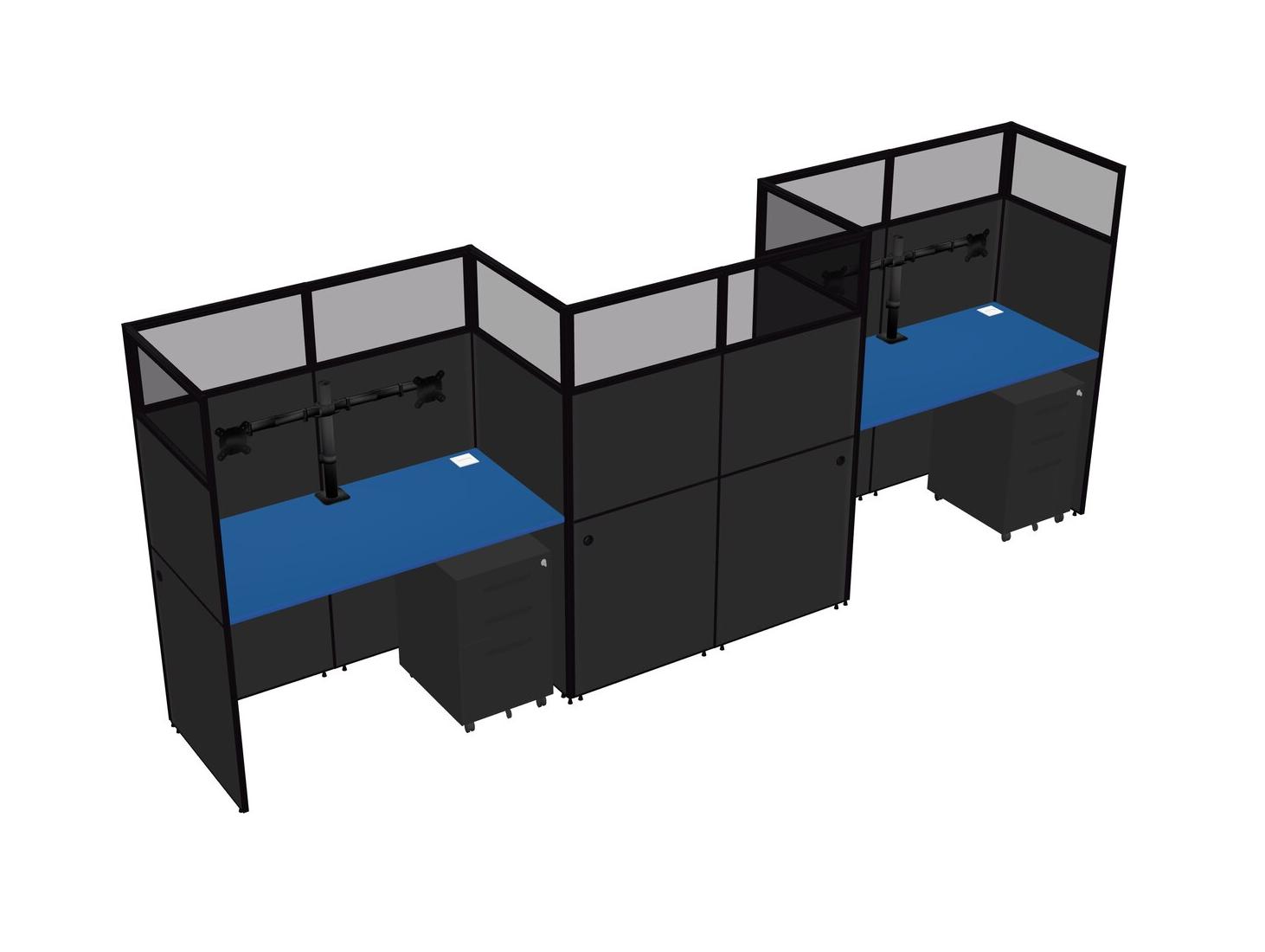 Prism Blue Rectangular Cubicle Workstations For 3 - Zigzag Formation + Black Metal Mobile Drawers