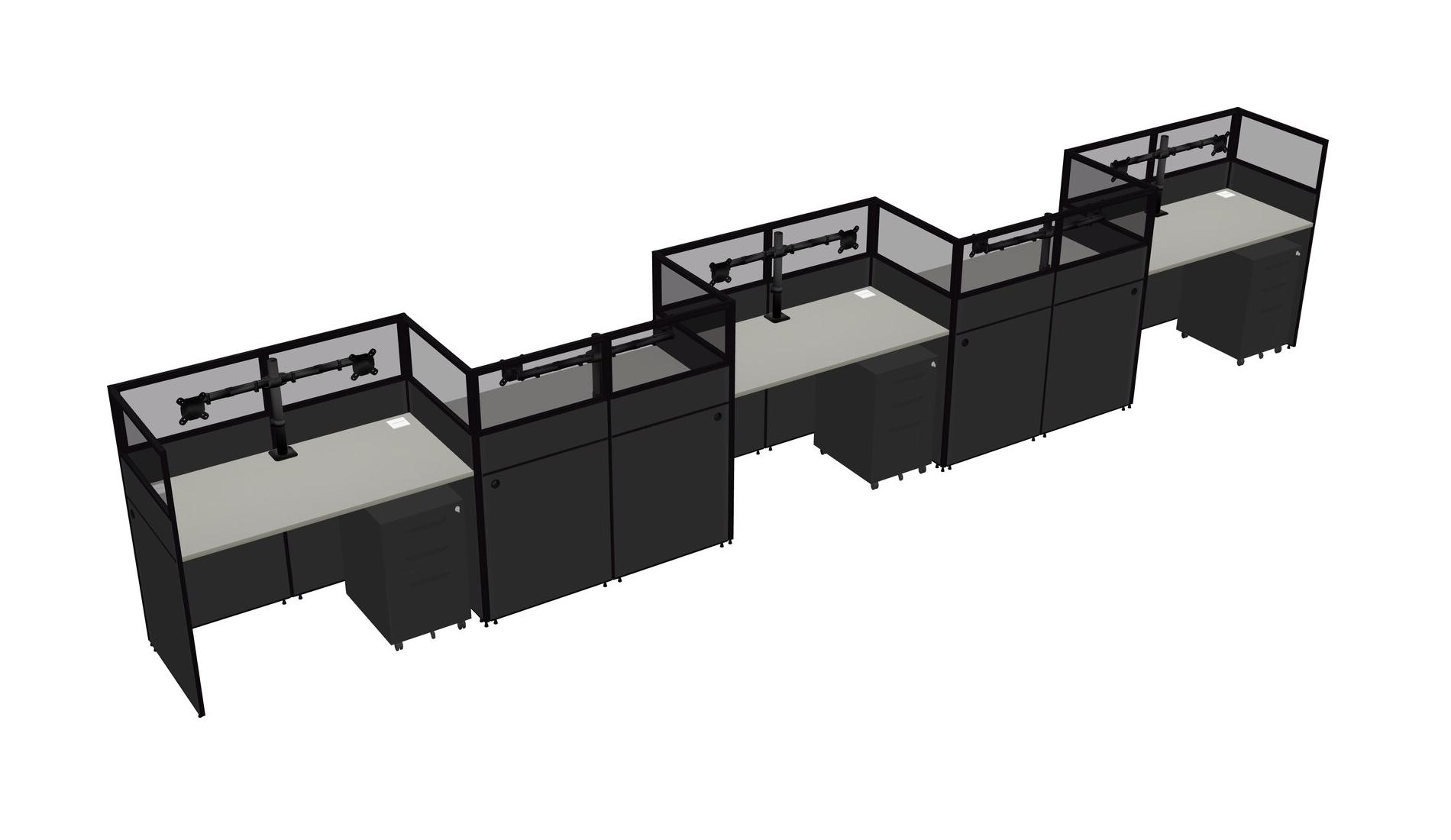 Grey Shadows Rectangular Cubicle Workstations For 5 - Zigzag Formation + Black Metal Mobile Drawers