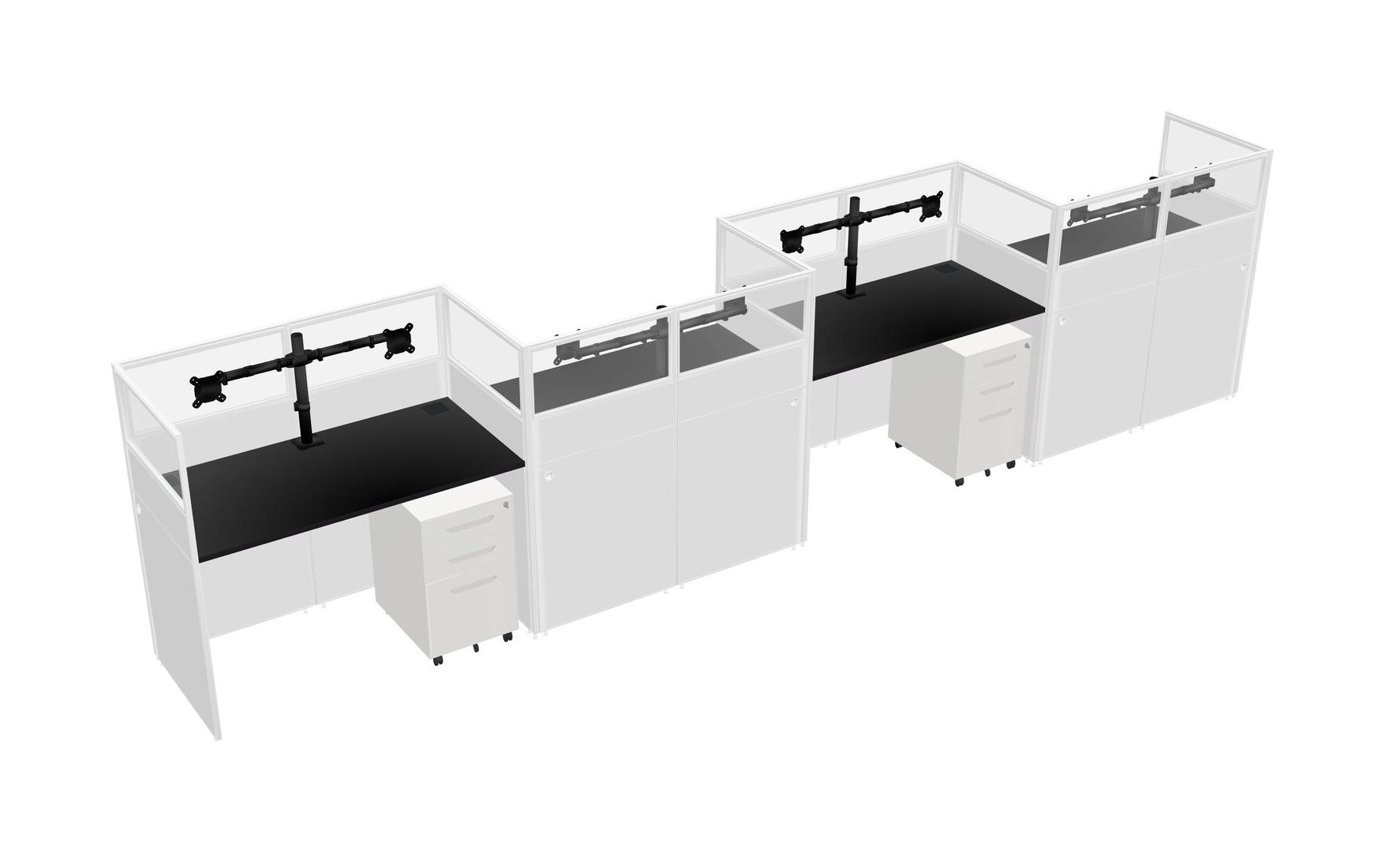 Black Rectangular Cubicle Workstations For 4 - Zigzag Formation + White Metal Mobile Drawers