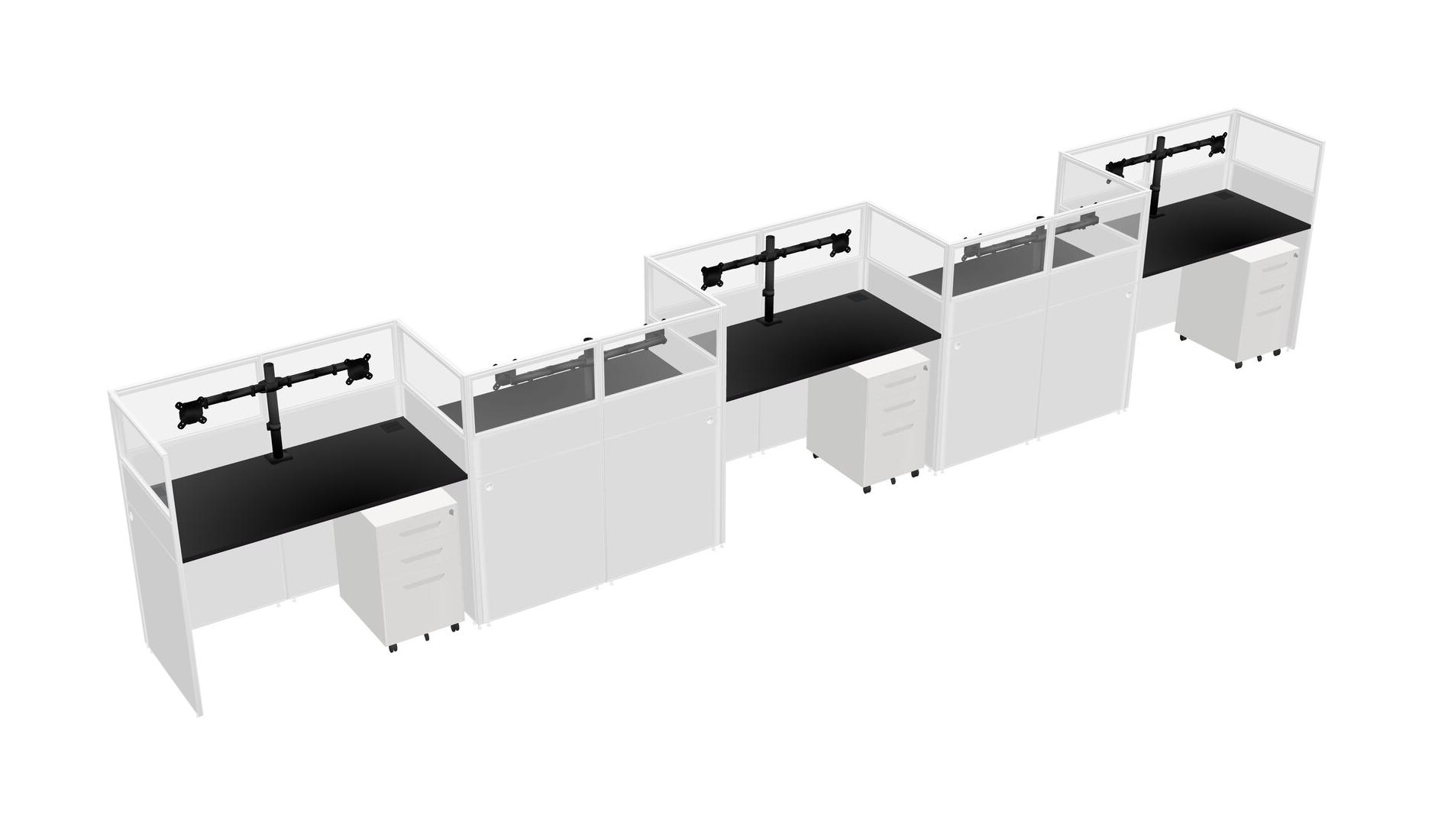 Black Rectangular Cubicle Workstations For 5 - Zigzag Formation + White Metal Mobile Drawers