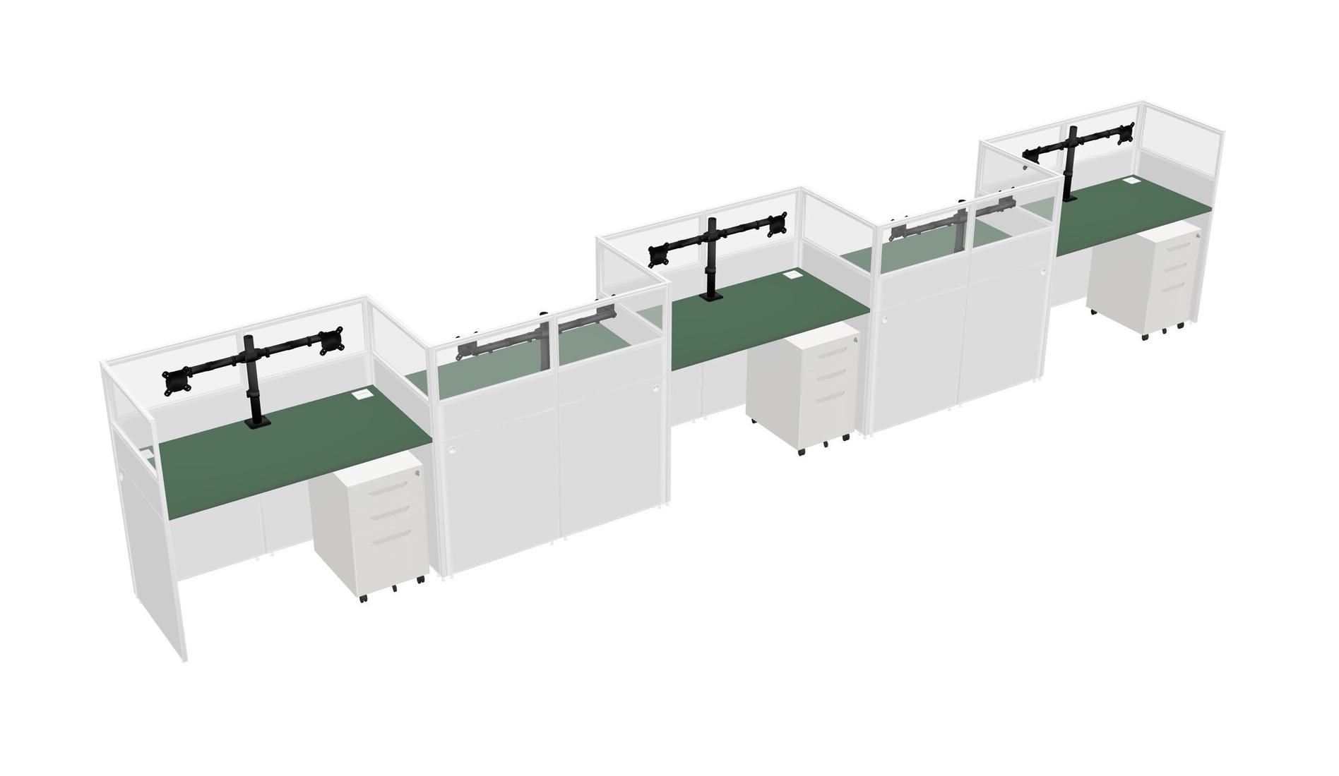 Green Rectangular Cubicle Workstations For 5 - Zigzag Formation + White Metal Mobile Drawers