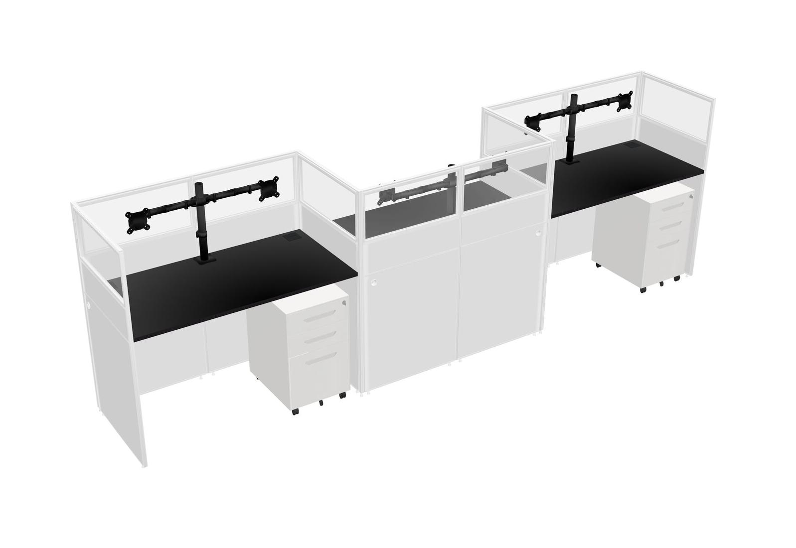 Black Rectangular Cubicle Workstations For 3 - Zigzag Formation + White Metal Mobile Drawers