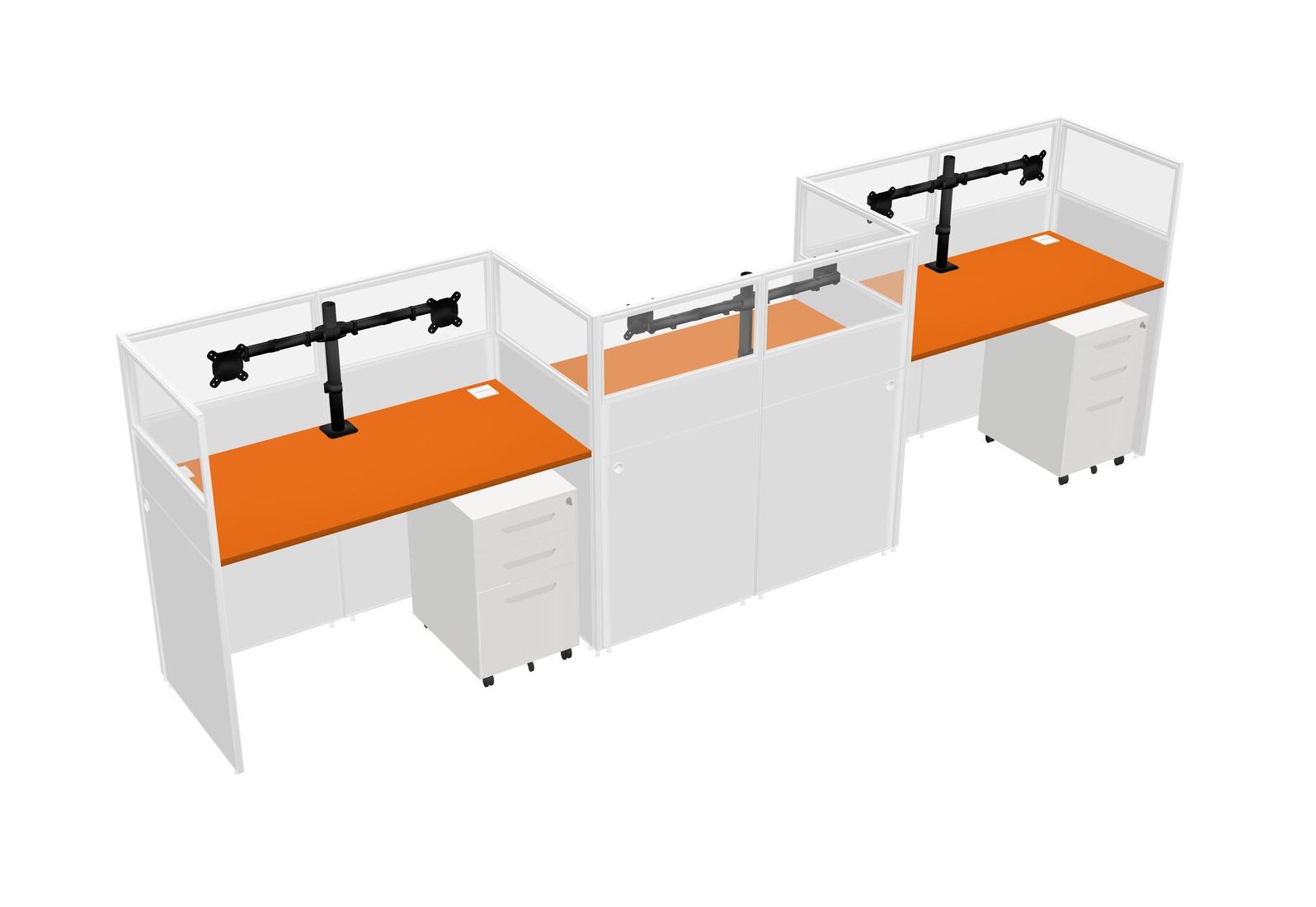 Orange Rectangular Cubicle Workstations For 3 - Zigzag Formation + White Metal Mobile Drawers