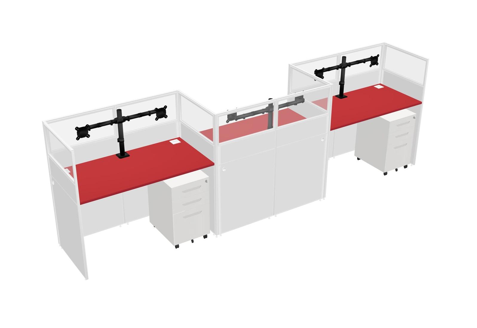 Prism Red Rectangular Cubicle Workstations For 3 - Zigzag Formation + White Metal Mobile Drawers