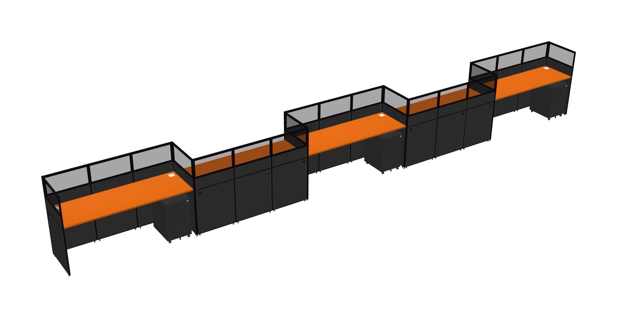 Orange Rectangular Cubicle Workstations For 5 - Zigzag Formation + Black Metal Mobile Drawers