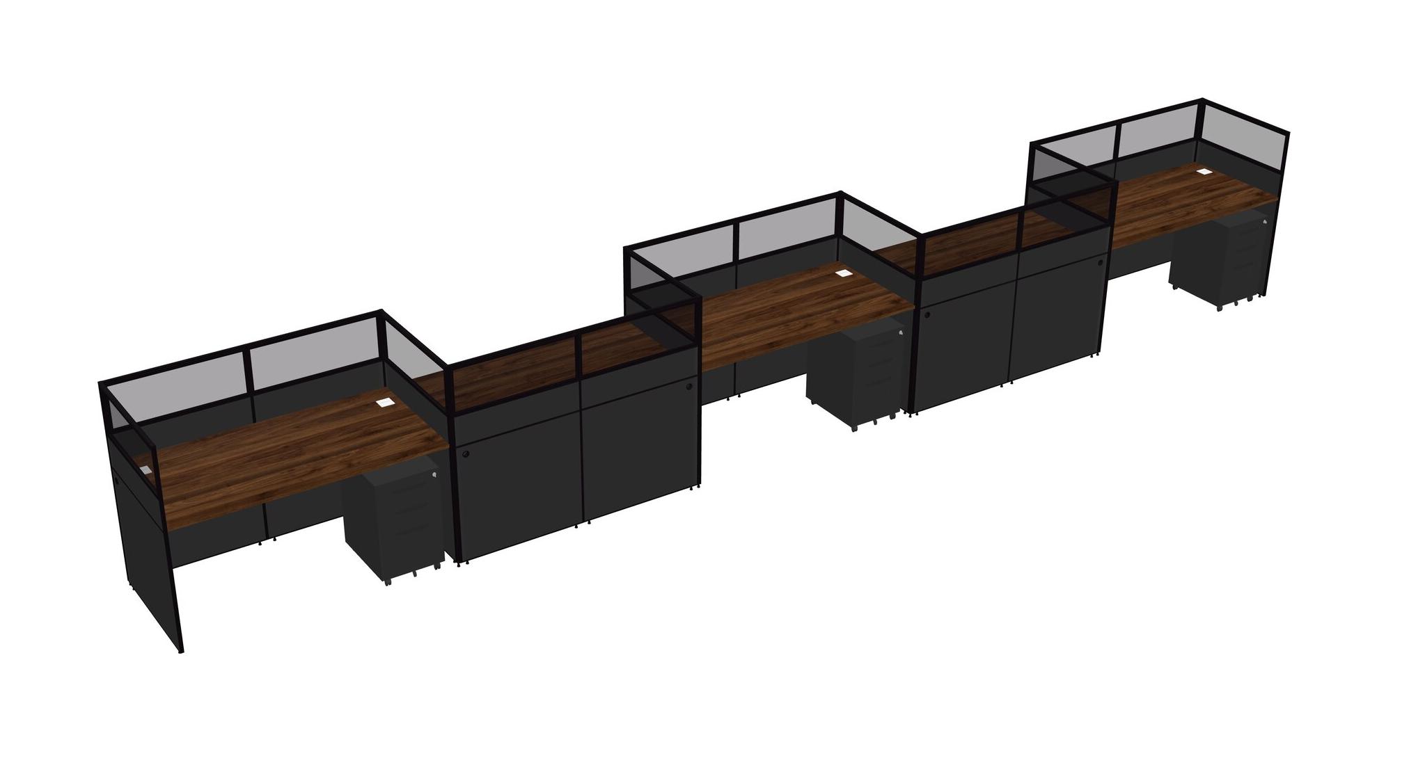 Columbia Walnut Rectangular Cubicle Workstations For 5 - Zigzag Formation + Black Metal Mobile Drawers