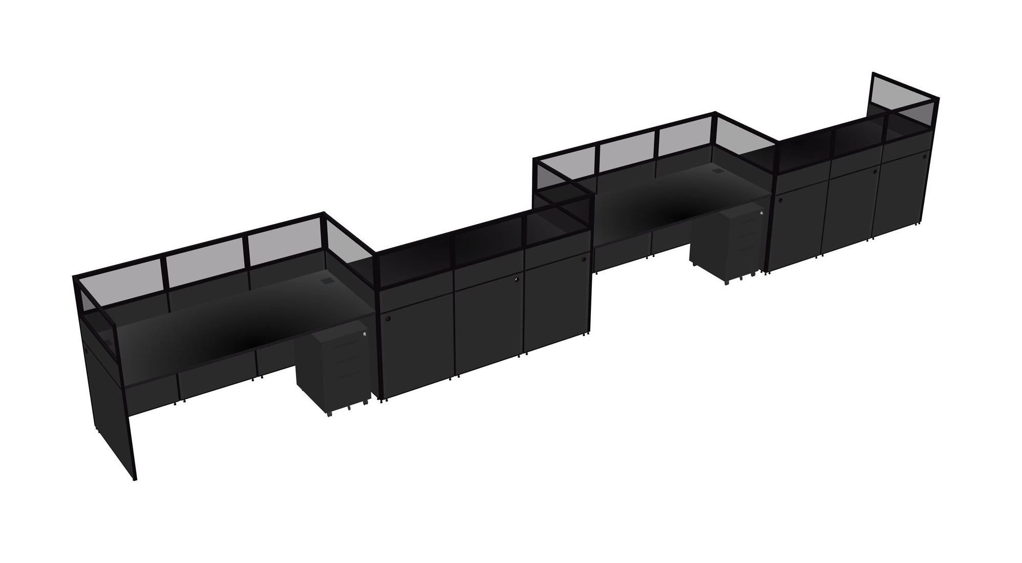 Black Rectangular Cubicle Workstations For 4 - Zigzag Formation + Black Metal Mobile Drawers