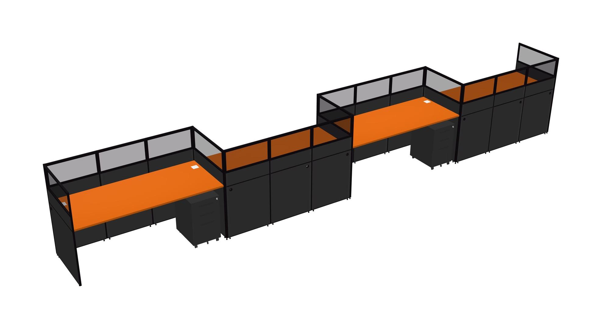 Orange Rectangular Cubicle Workstations For 4 - Zigzag Formation + Black Metal Mobile Drawers