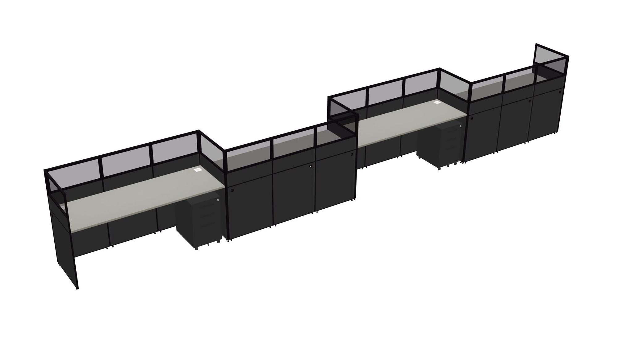 Grey Shadows Rectangular Cubicle Workstations For 4 - Zigzag Formation + Black Metal Mobile Drawers