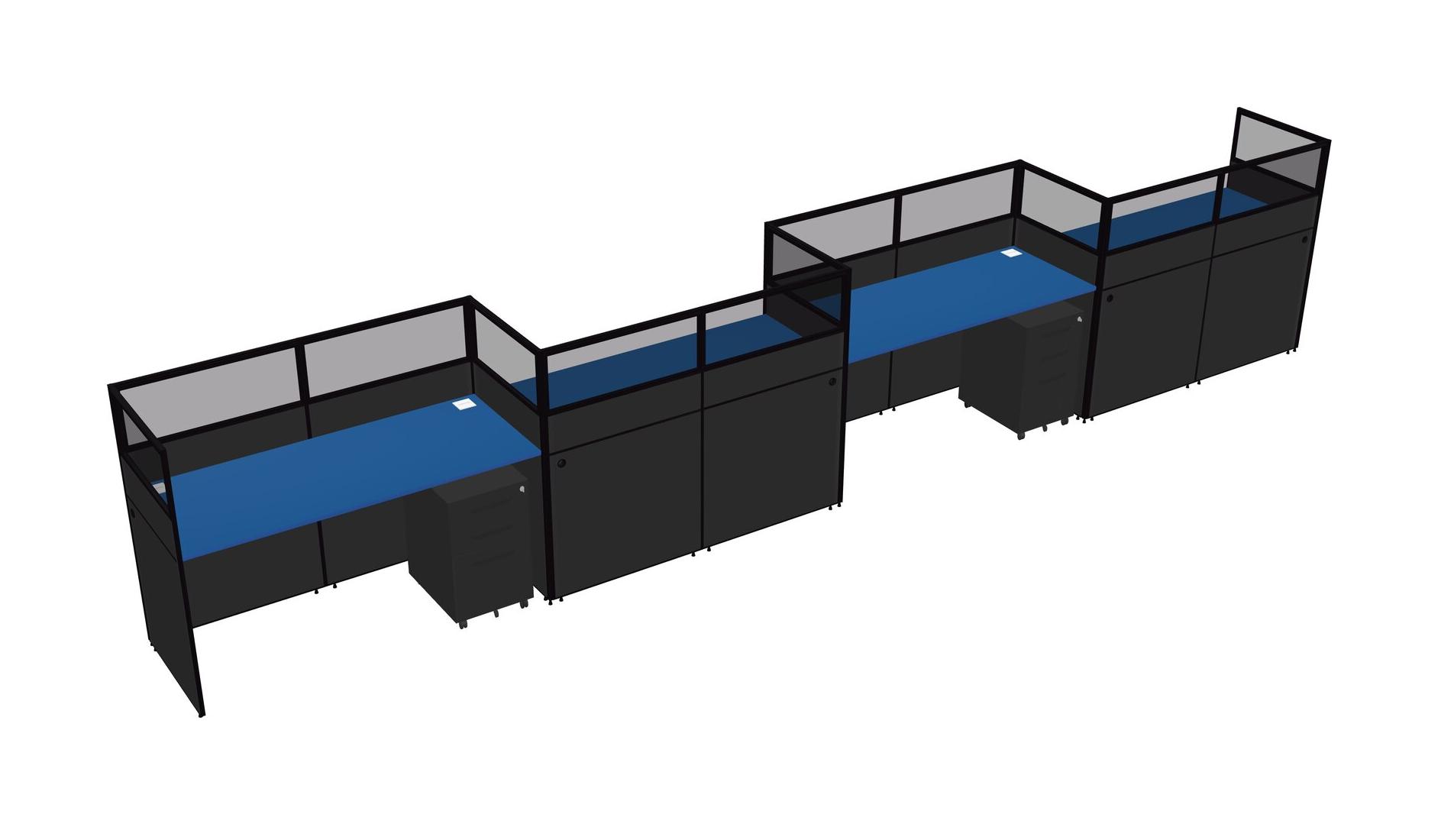 Prism Blue Rectangular Cubicle Workstations For 4 - Zigzag Formation + Black Metal Mobile Drawers