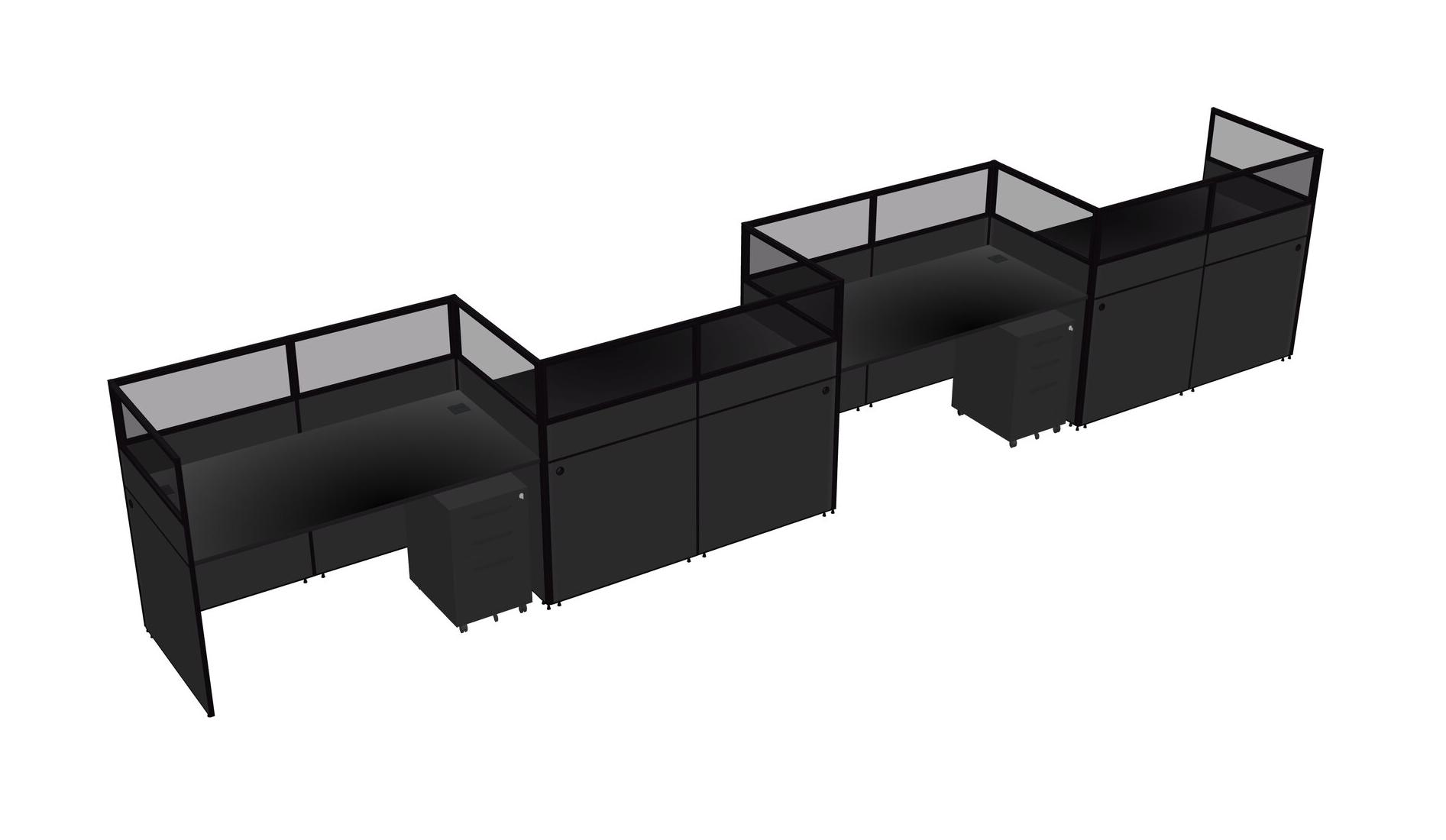 Black Rectangular Cubicle Workstations For 4 - Zigzag Formation + Black Metal Mobile Drawers