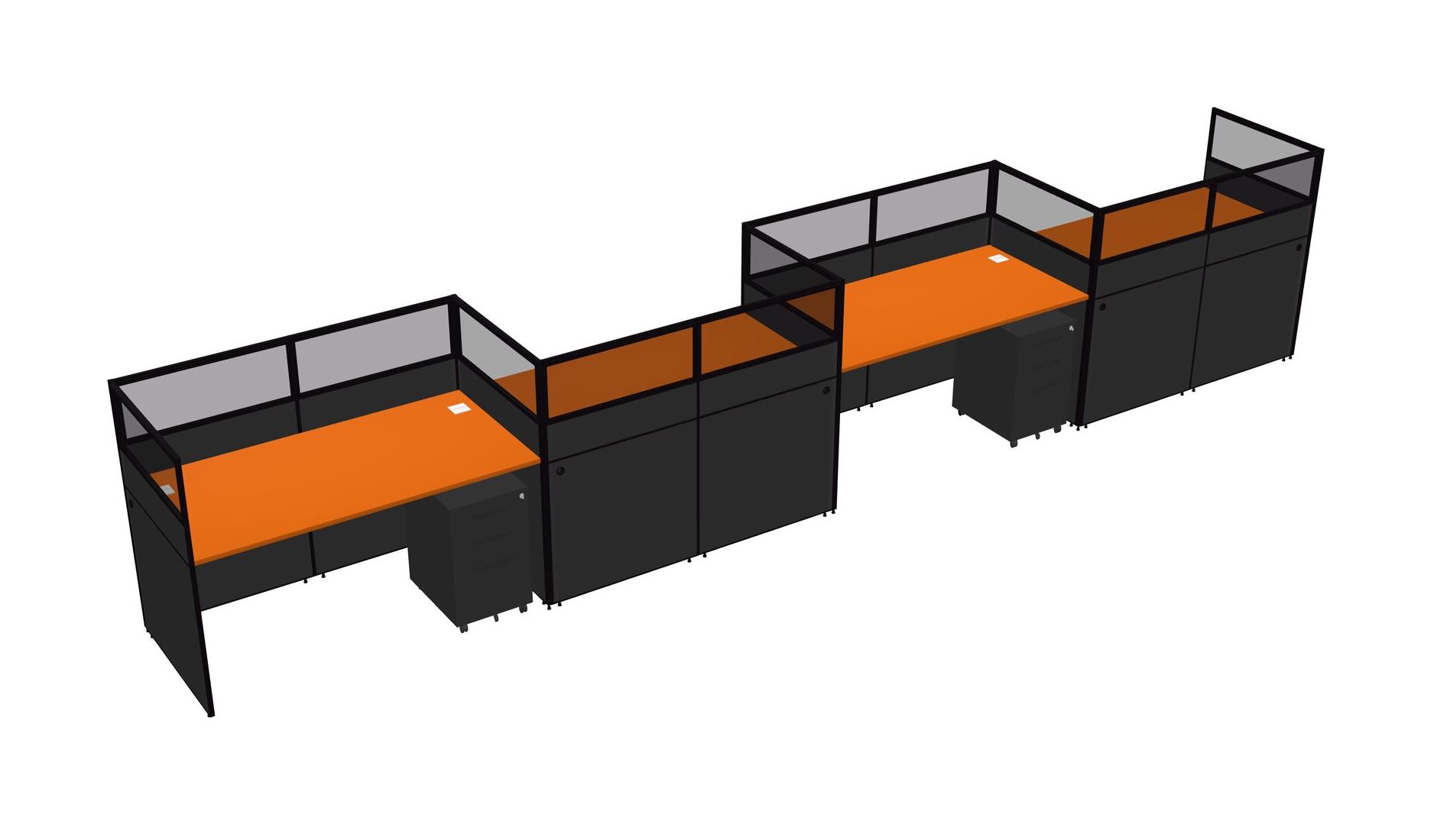 Orange Rectangular Cubicle Workstations For 4 - Zigzag Formation + Black Metal Mobile Drawers