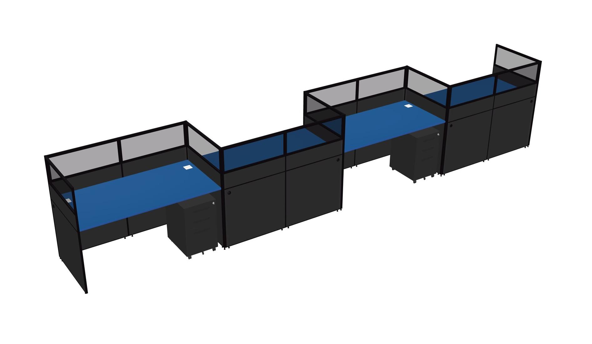 Prism Blue Rectangular Cubicle Workstations For 4 - Zigzag Formation + Black Metal Mobile Drawers