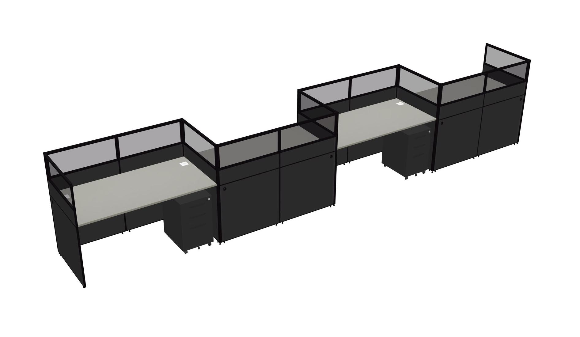 Grey Shadows Rectangular Cubicle Workstations For 4 - Zigzag Formation + Black Metal Mobile Drawers