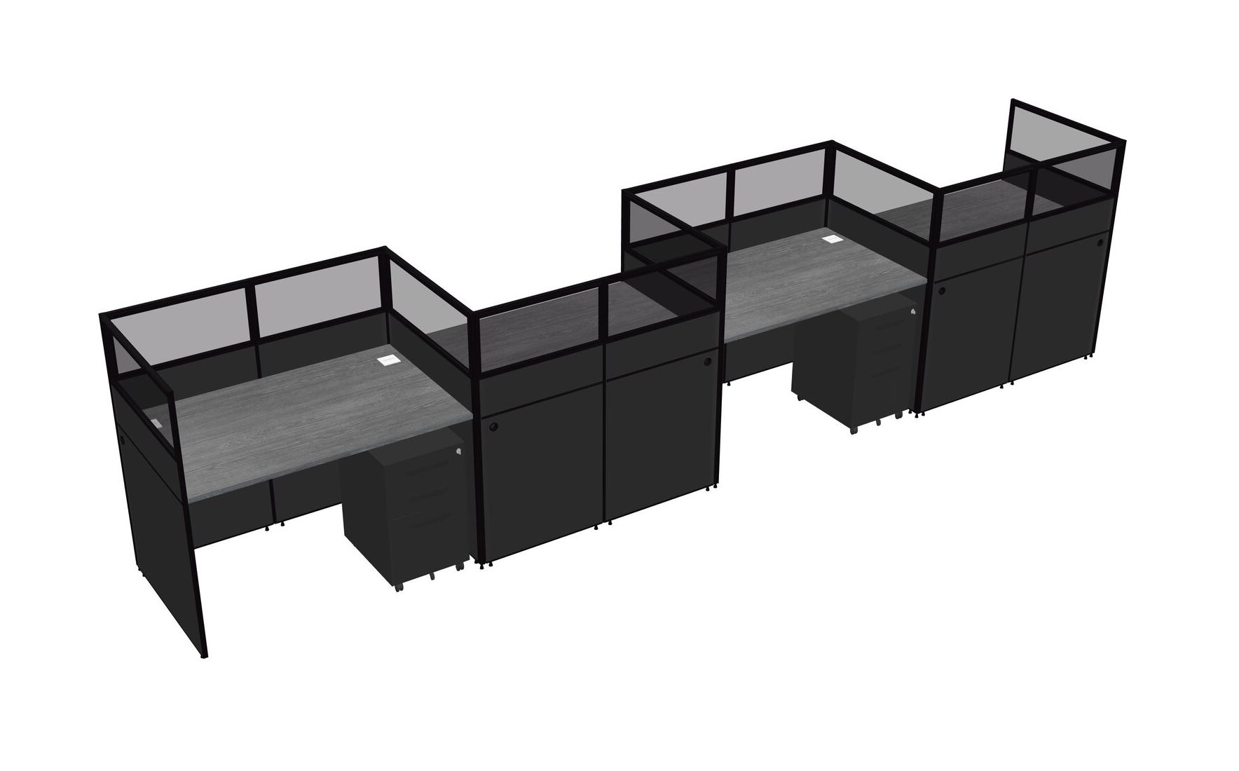 Grey Rectangular Cubicle Workstations For 4 - Zigzag Formation + Black Metal Mobile Drawers