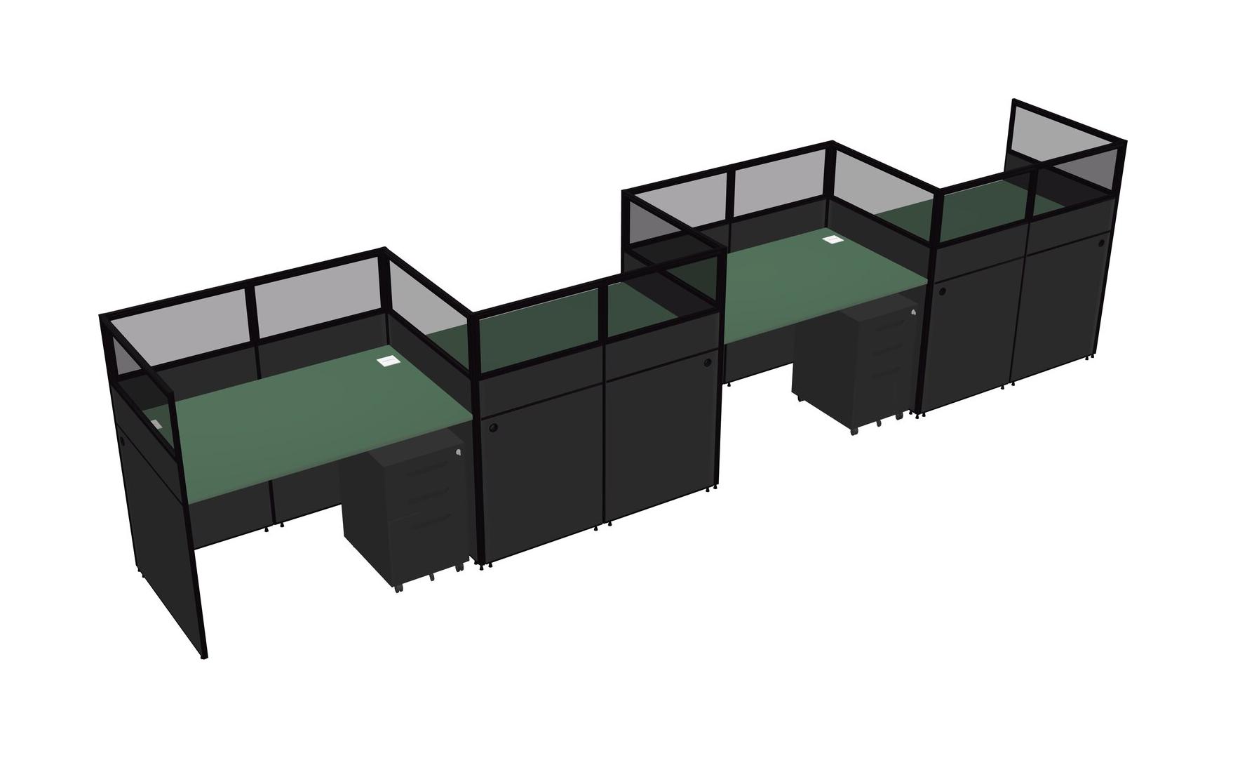 Green Rectangular Cubicle Workstations For 4 - Zigzag Formation + Black Metal Mobile Drawers