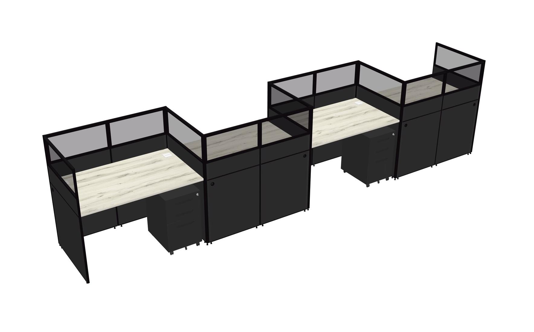 Heinne Holz Rectangular Cubicle Workstations For 4 - Zigzag Formation + Black Metal Mobile Drawers